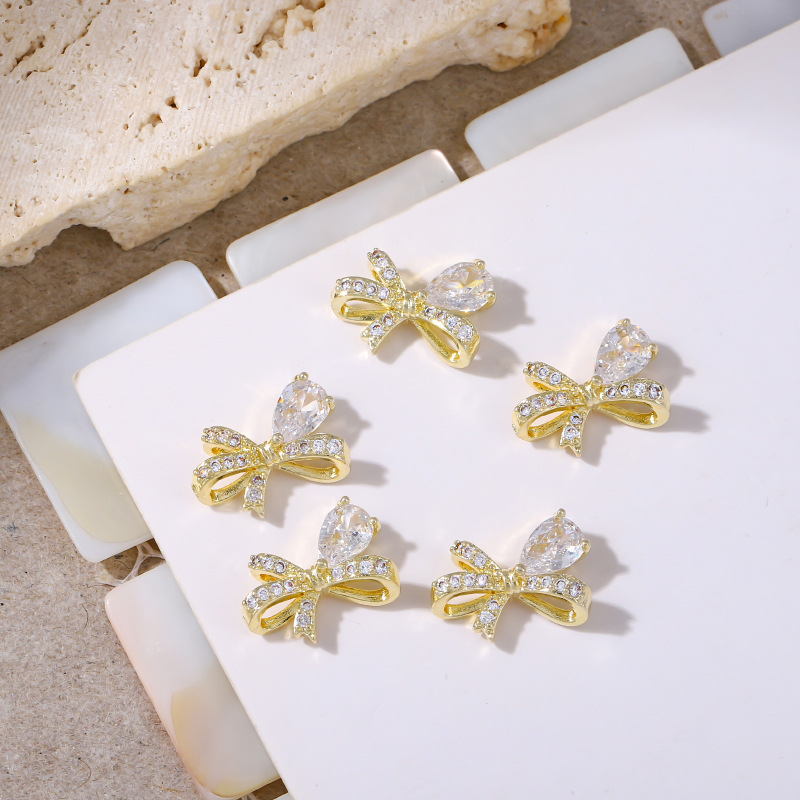 ネットで話題の高級感あふれるネイルアート用ジルコニア装飾、立体感のある超キラキラ輝く水滴とリボン型のDIYネイルアクセサリー