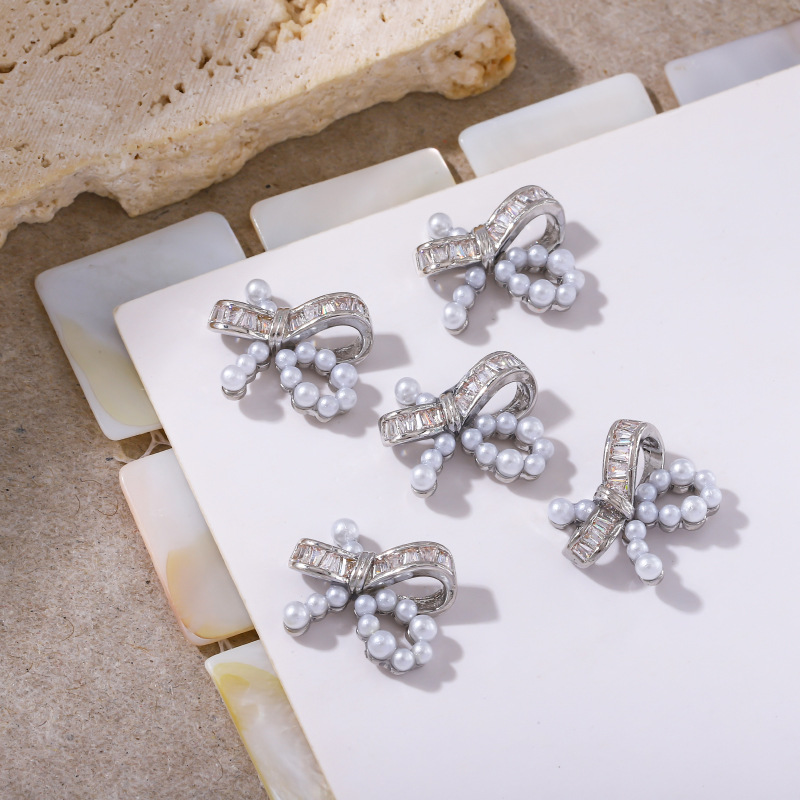 軽くて豪華な超フラッシュ銀色のジルコンの蝶のネイルアクセサリーの立体の真珠の蝶結びの銅はドリルの爪を入れて卸売りを飾ります。
