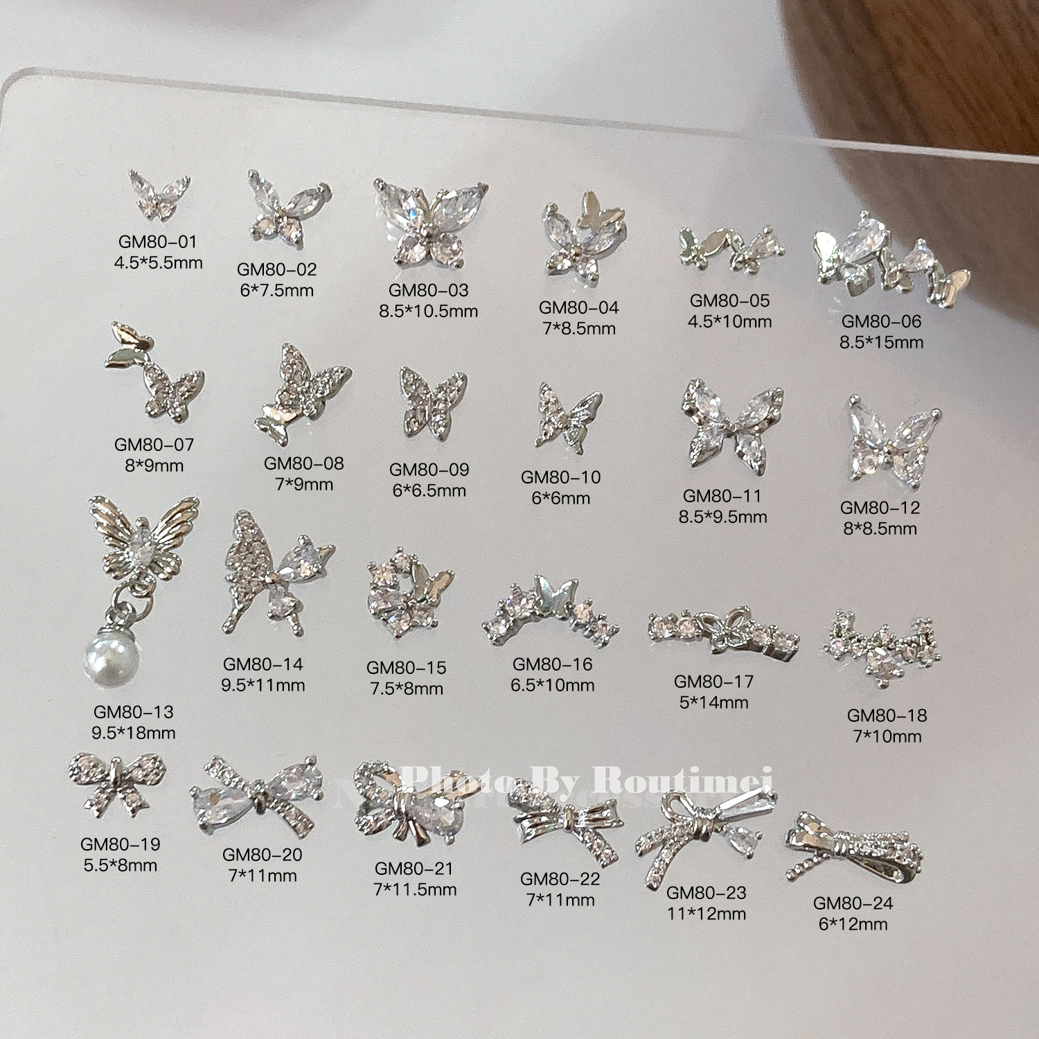新款银色锆石蝴蝶结超闪指甲装饰钻网红爆款小配饰美甲钻饰品批发