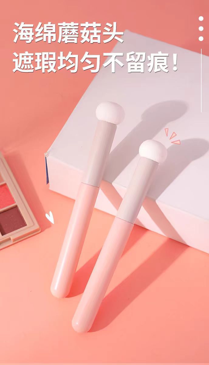 キノコヘッドコンシーラーブラシ、涙溝、クマ、ほうれい線をカバーする丸頭スポンジヘッド、細くて柔らかい小さなまんじゅうメイクブラシ