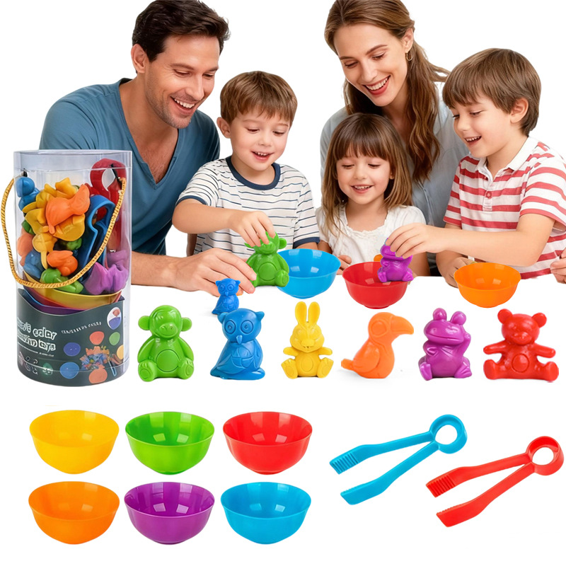 跨境早教计数动物玩具认知动物分拣游戏颜色分类碗答题卡益智教具