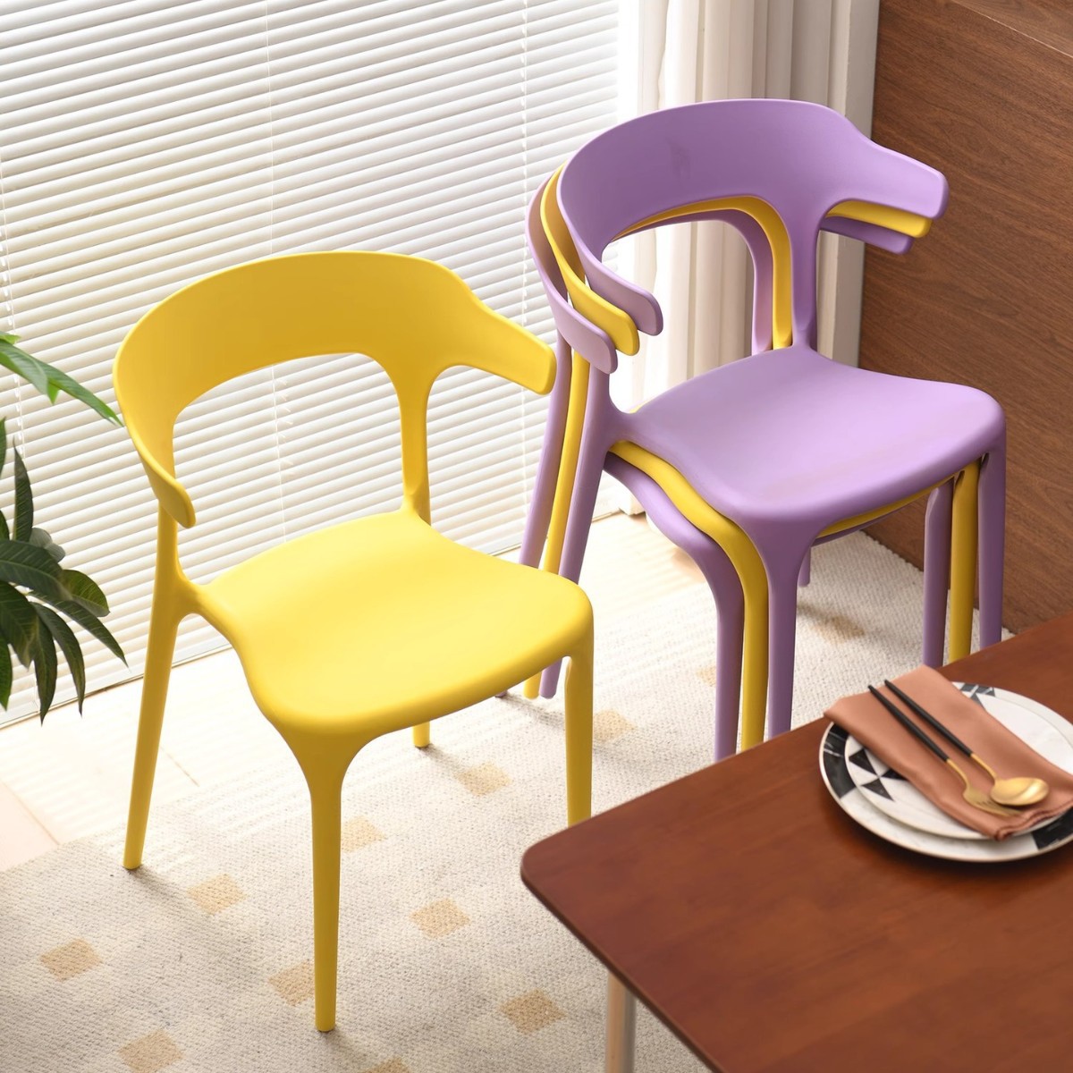 シンプルな食事椅子北欧の屋外には、カジュアルな椅子を積み重ねることができます。