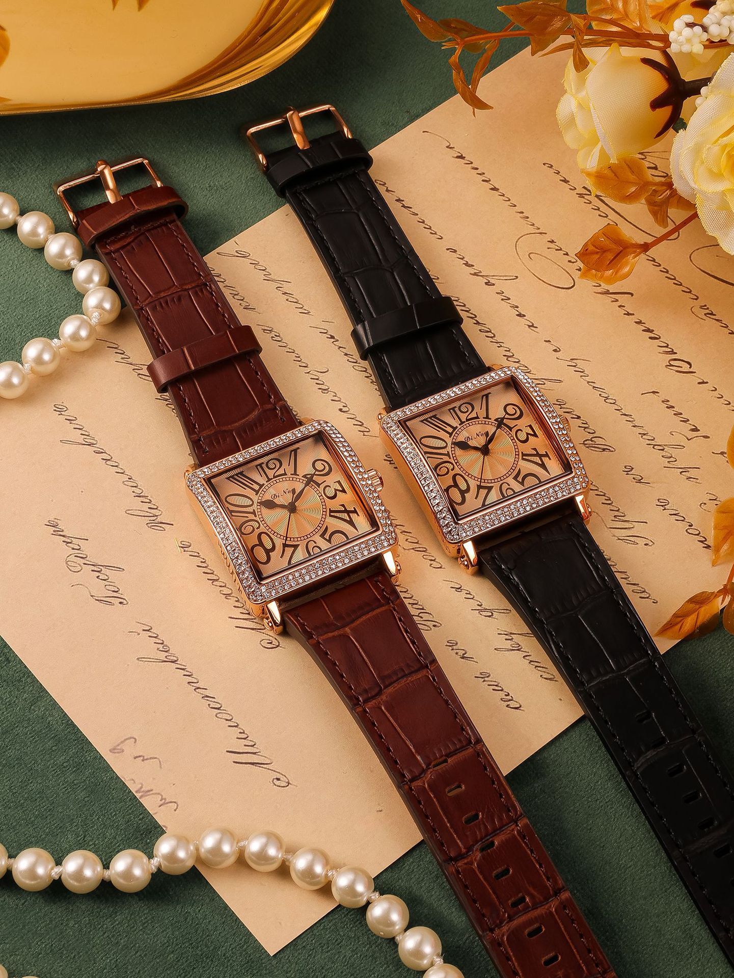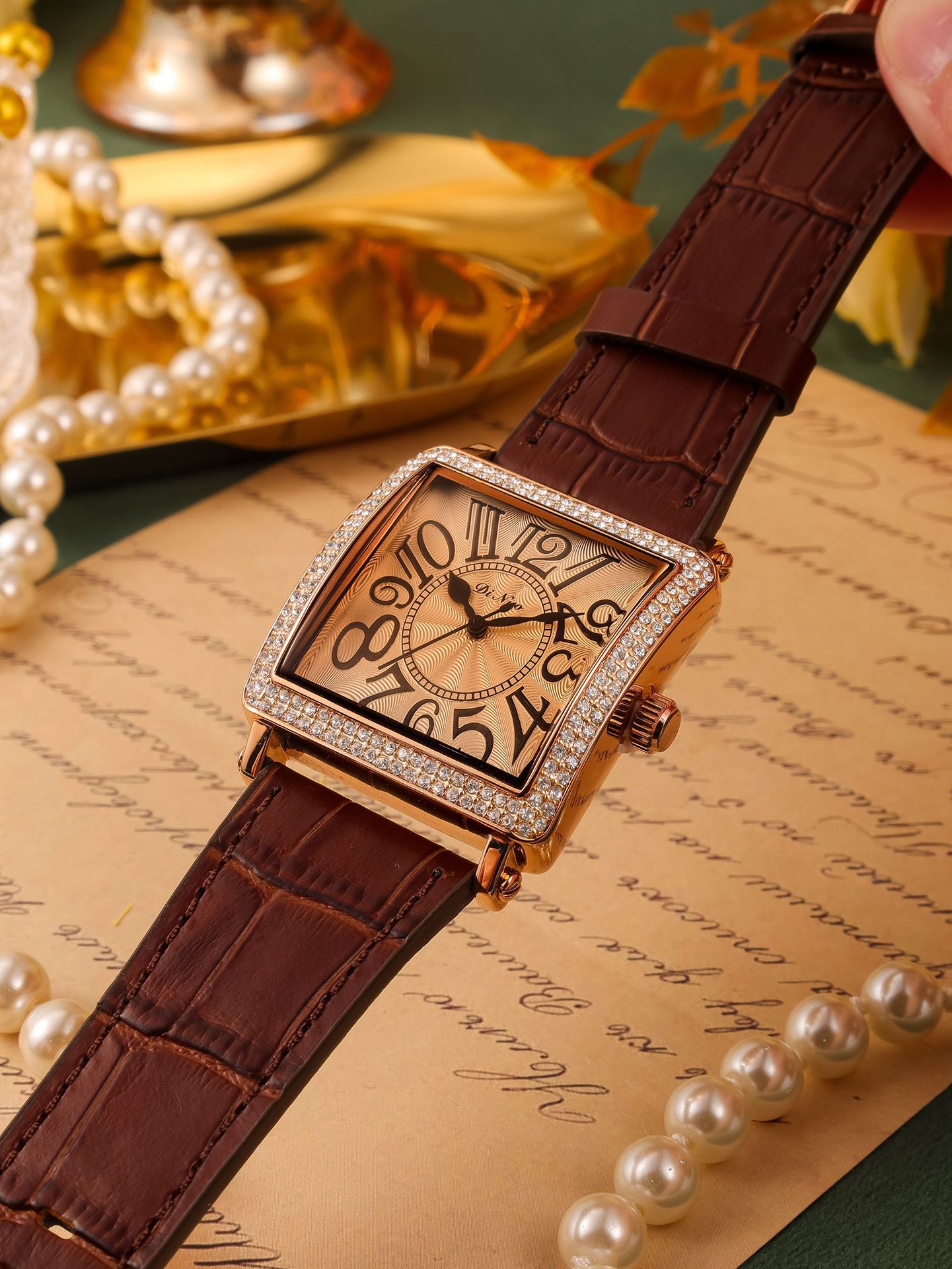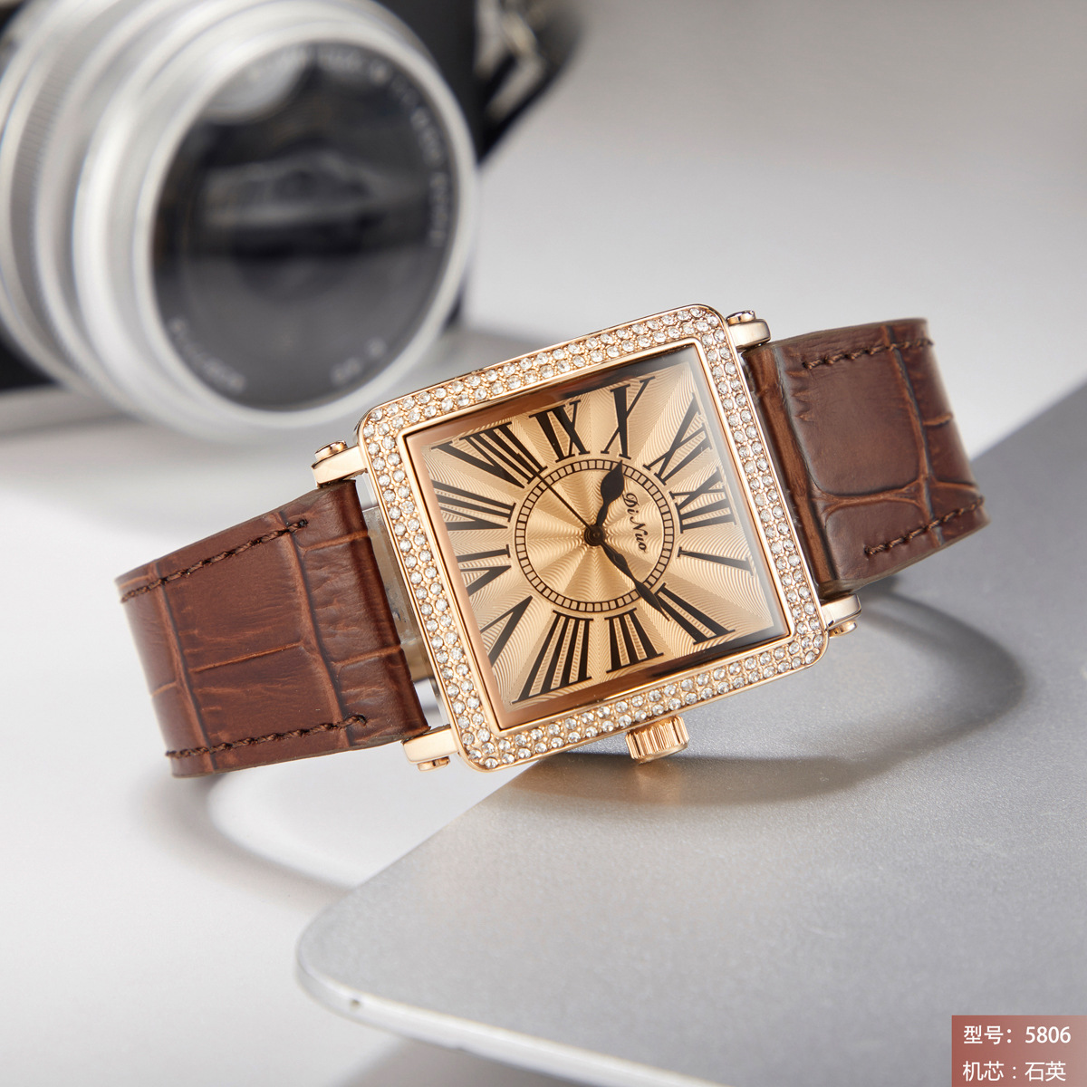 DINUO_5710 レディース腕時計輸入クォーツライト高級レトロクラシックスタイルニッチストリーマーダイヤモンドケース