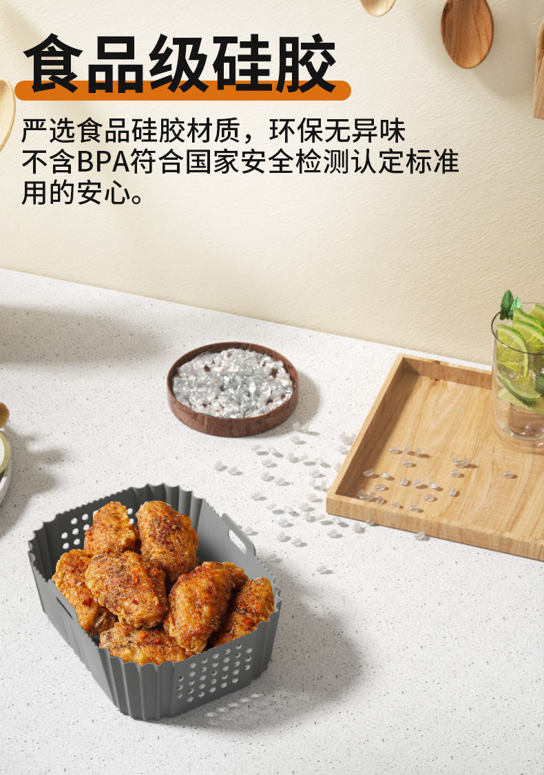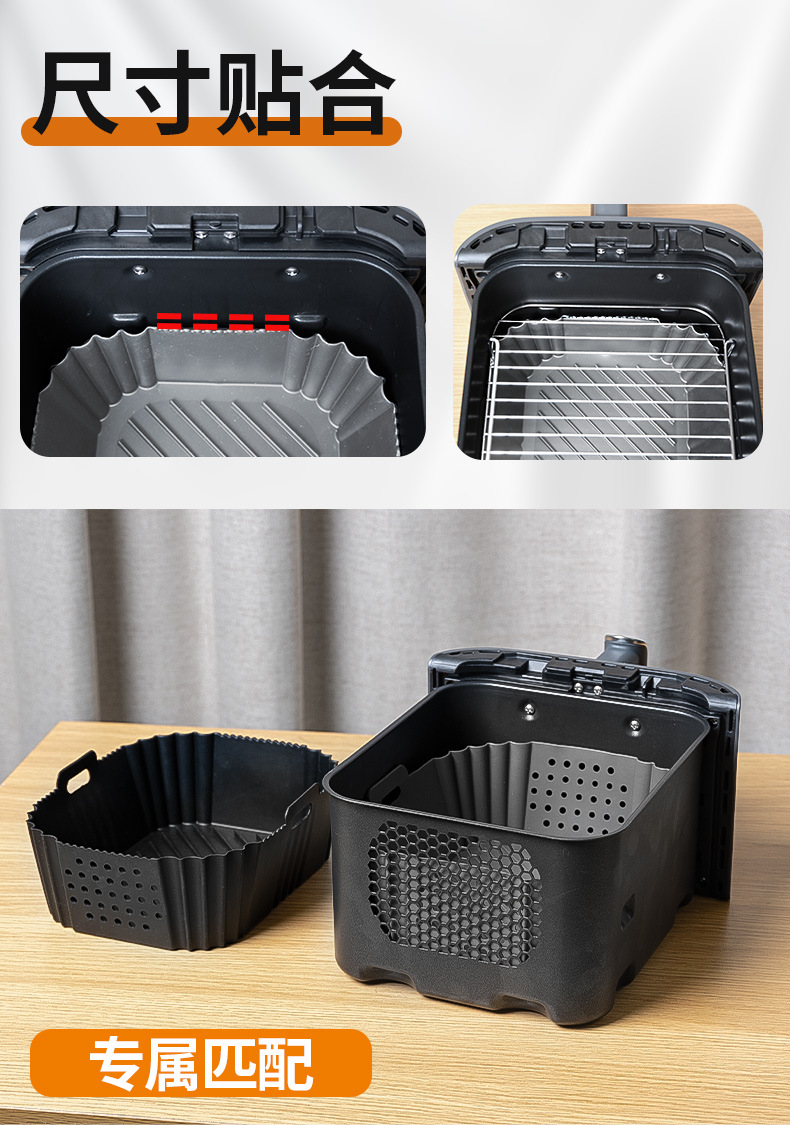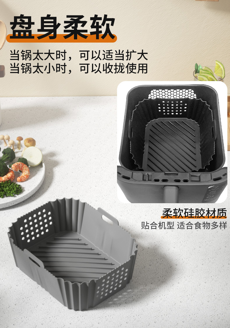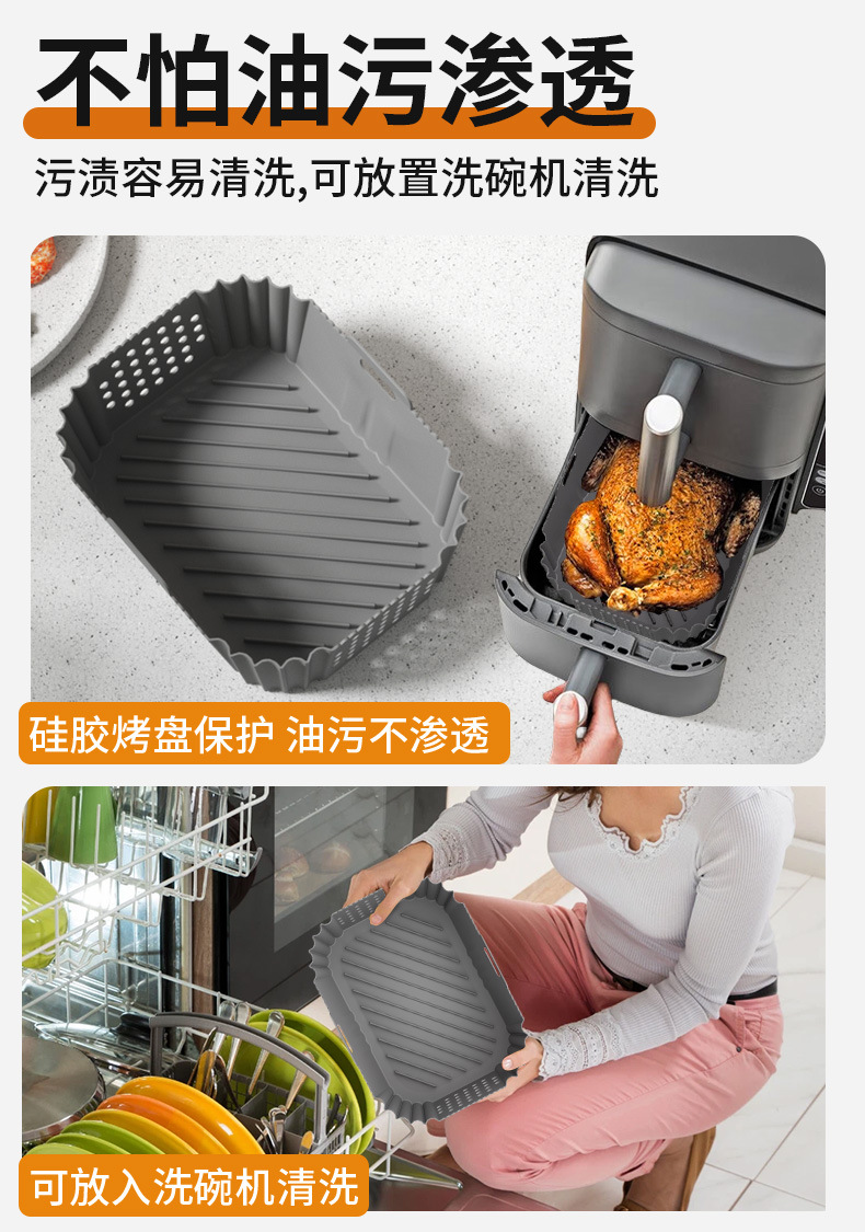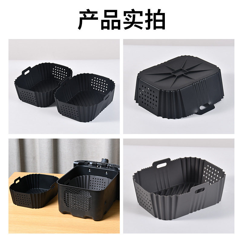クロスボーダーアマゾンスクエアベーキングパンラウンドエアフライヤーシリコンベーキングパン折りたたみエアフライヤーシリコン裏地