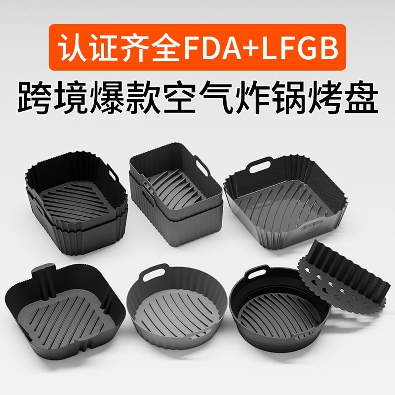 跨境热销空气炸锅专用烤盘Air Fryer厨房多规格方形圆形硅胶烤盘