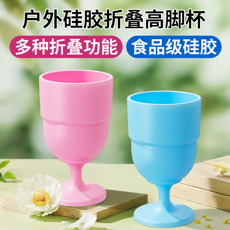 アマゾンの新型シリコン折り畳みカップファッション携帯型ワイングラス多機能転倒防止屋外折り畳み高足カップ