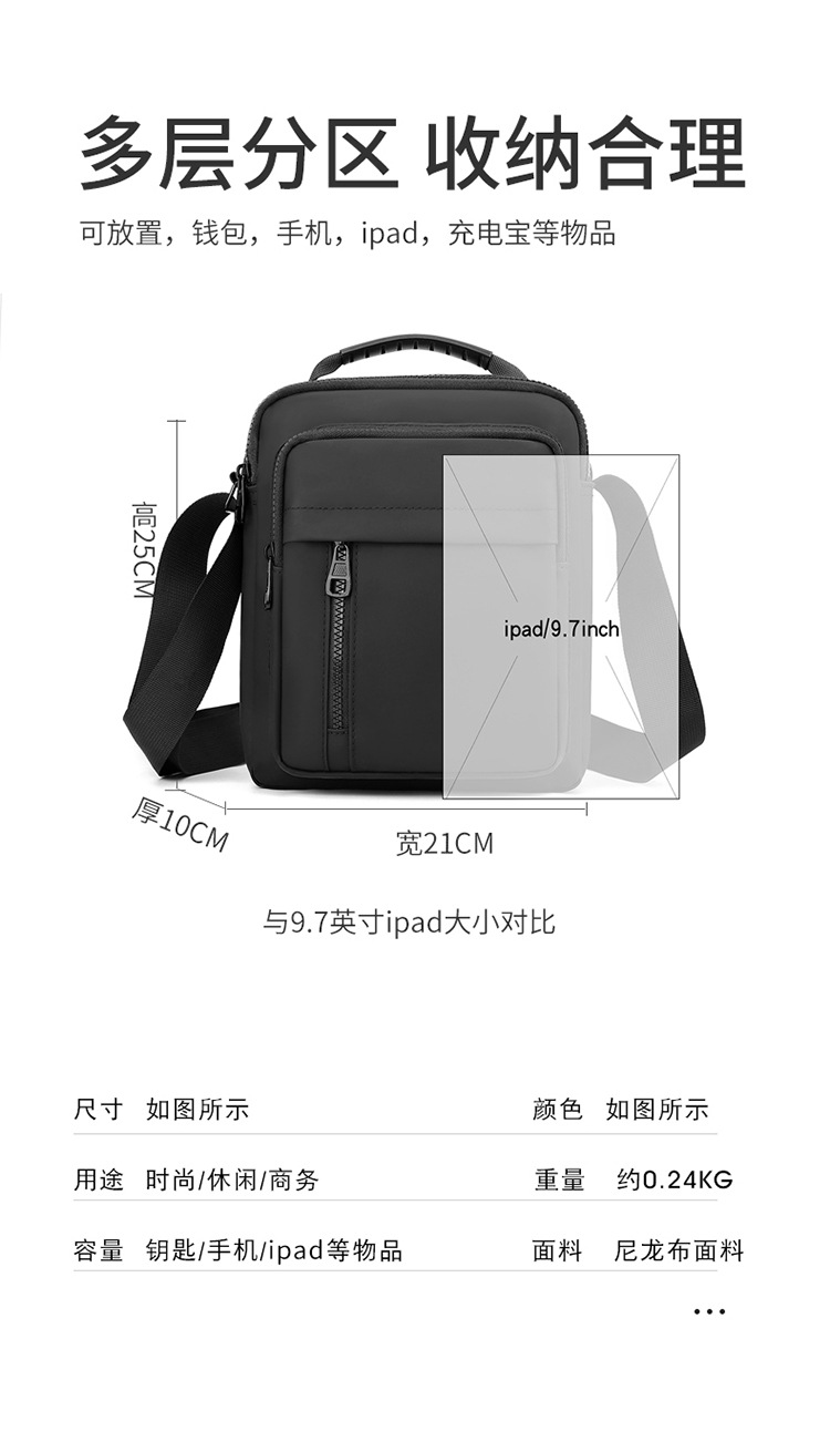 爆発的なビジネスバッグ男性の新しいモデルは、軽やかなオックスフォード布の多層カジュアルなシングルバッグ通勤のショルダーバッグのバッグ男性を組み合わせたものです