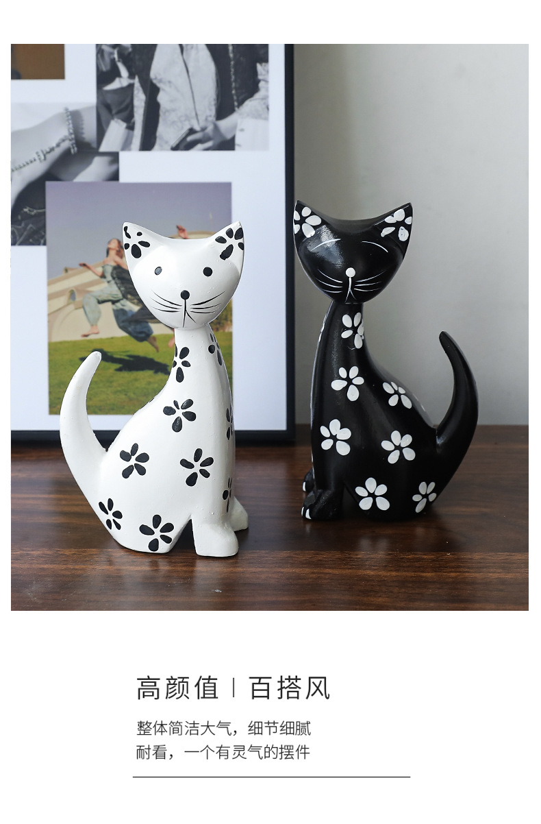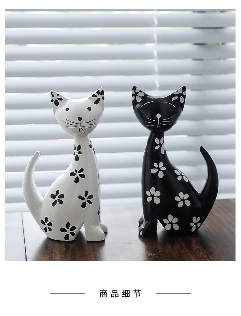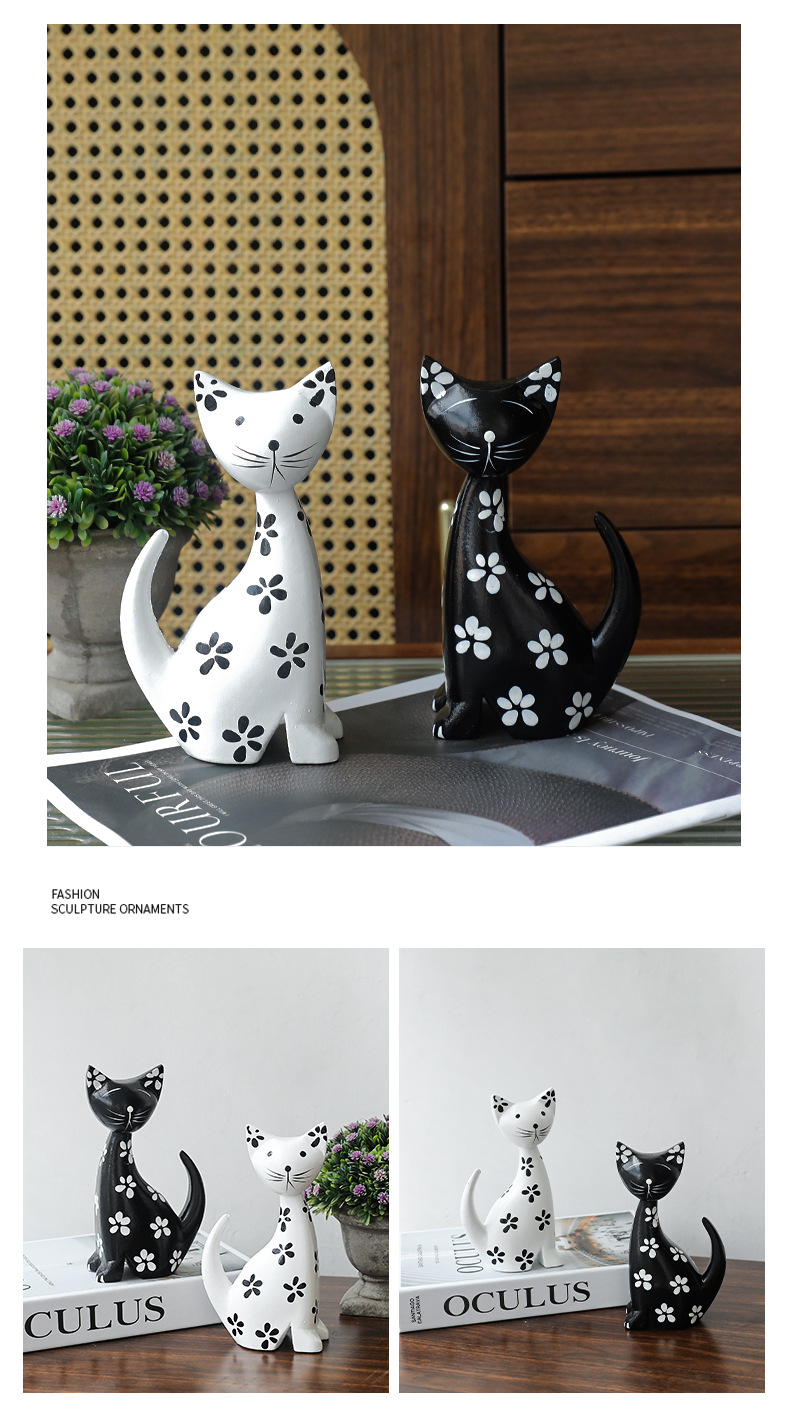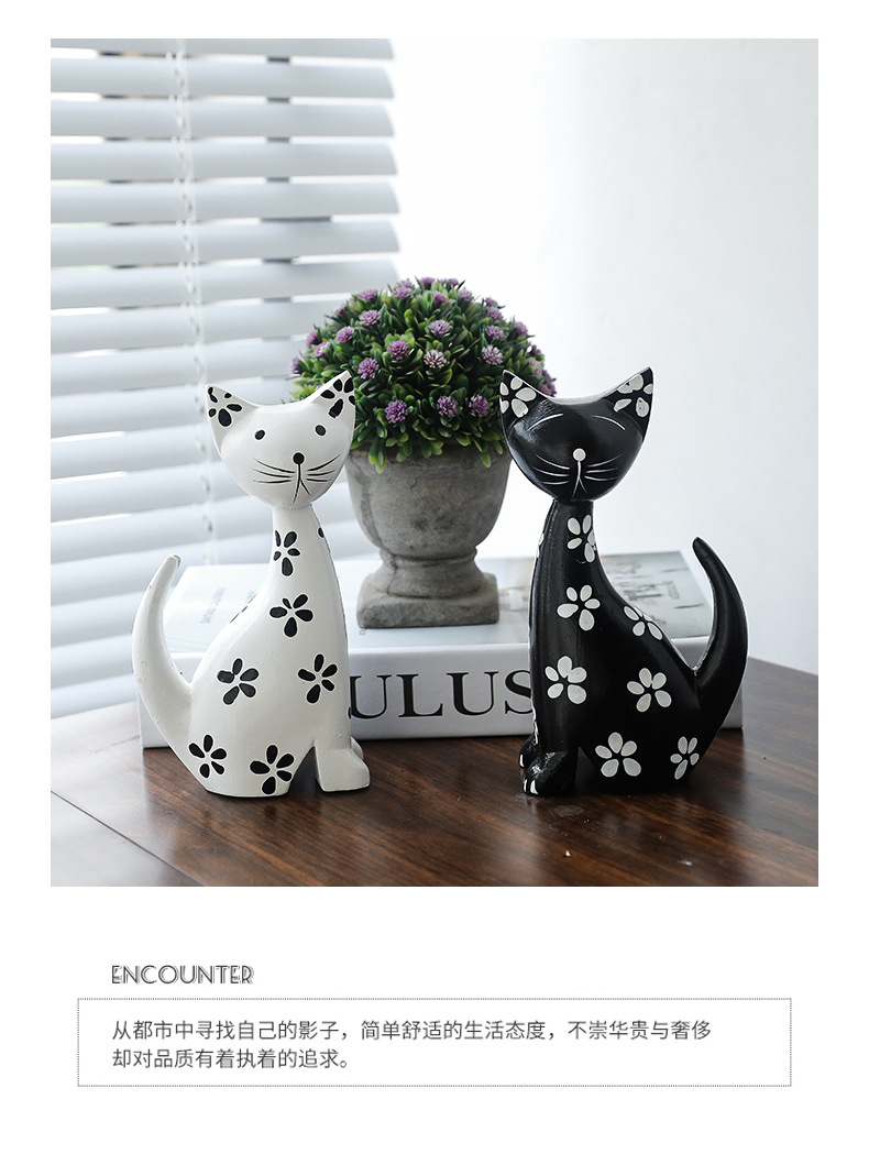 モダンシンプルな黒と白のカップルの斑点のある子猫の置物リビングルームの寝室のキャビネットの柔らかい装飾品の部屋の結婚プレゼント