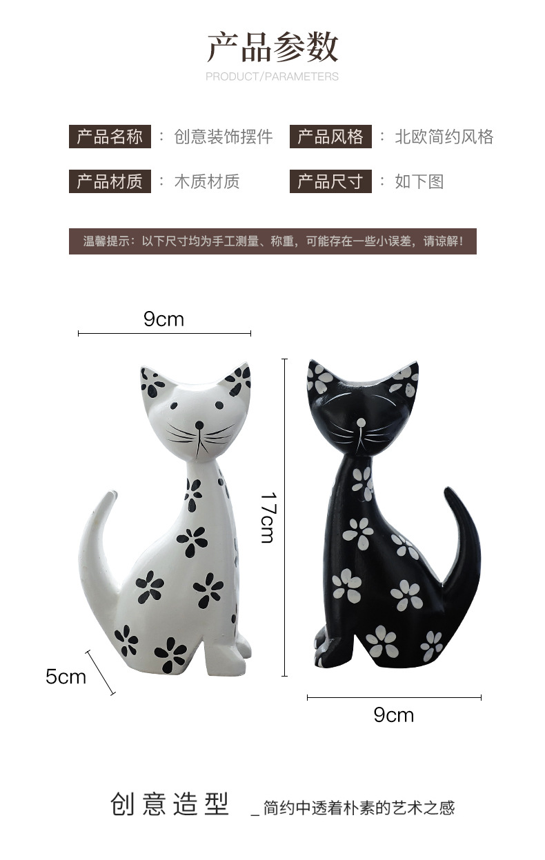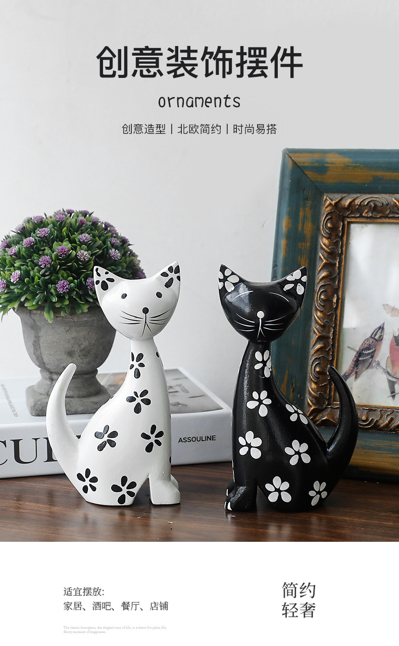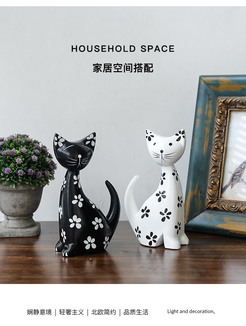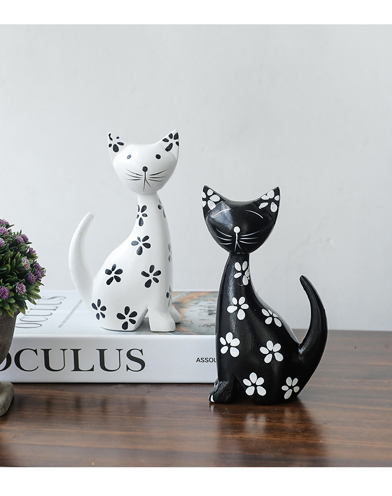 モダンシンプルな黒と白のカップルの斑点のある子猫の置物リビングルームの寝室のキャビネットの柔らかい装飾品の部屋の結婚プレゼント