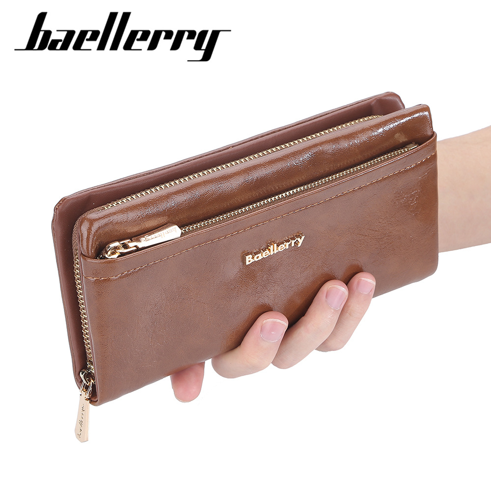 Baeller ryの新型女性の長い財布欧米のワックスの皮のファッション的な携帯電話はファスナーのハンドバッグを持って卸売りします。