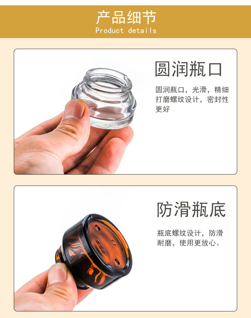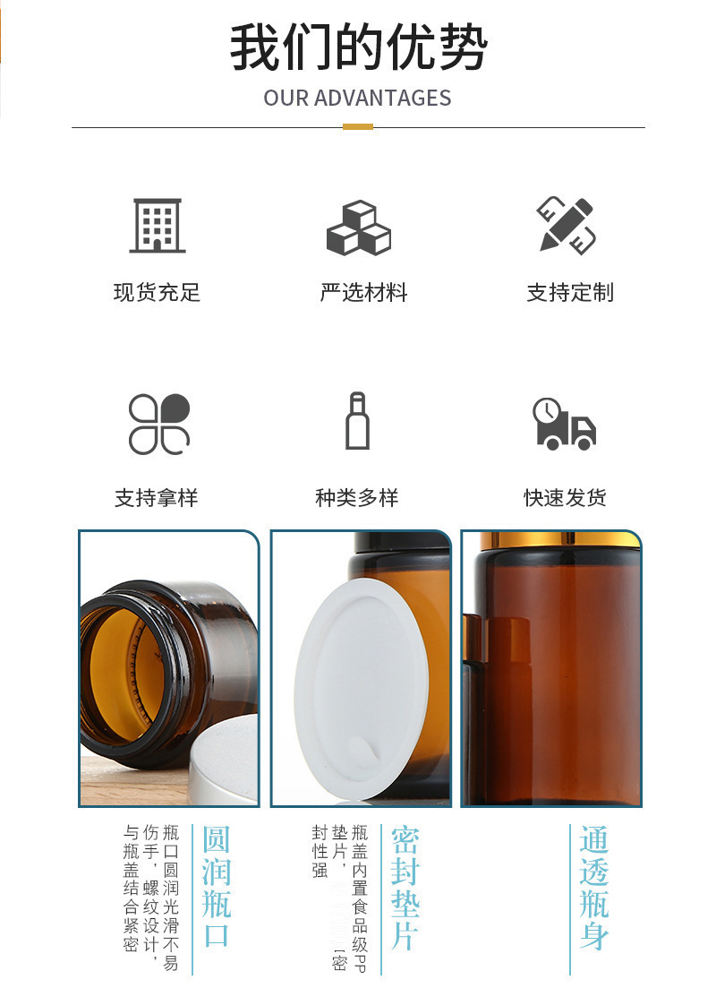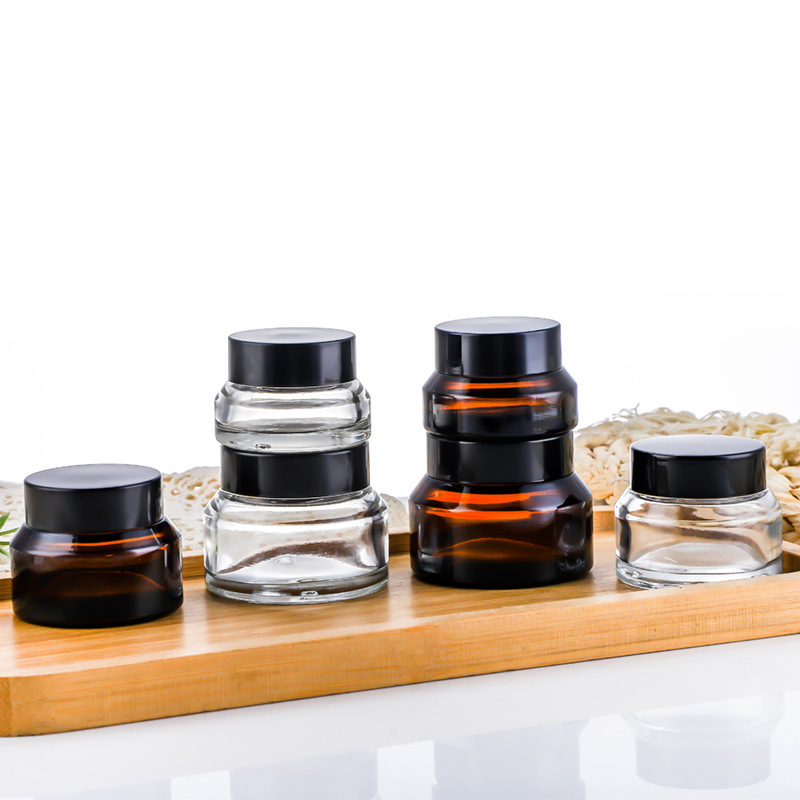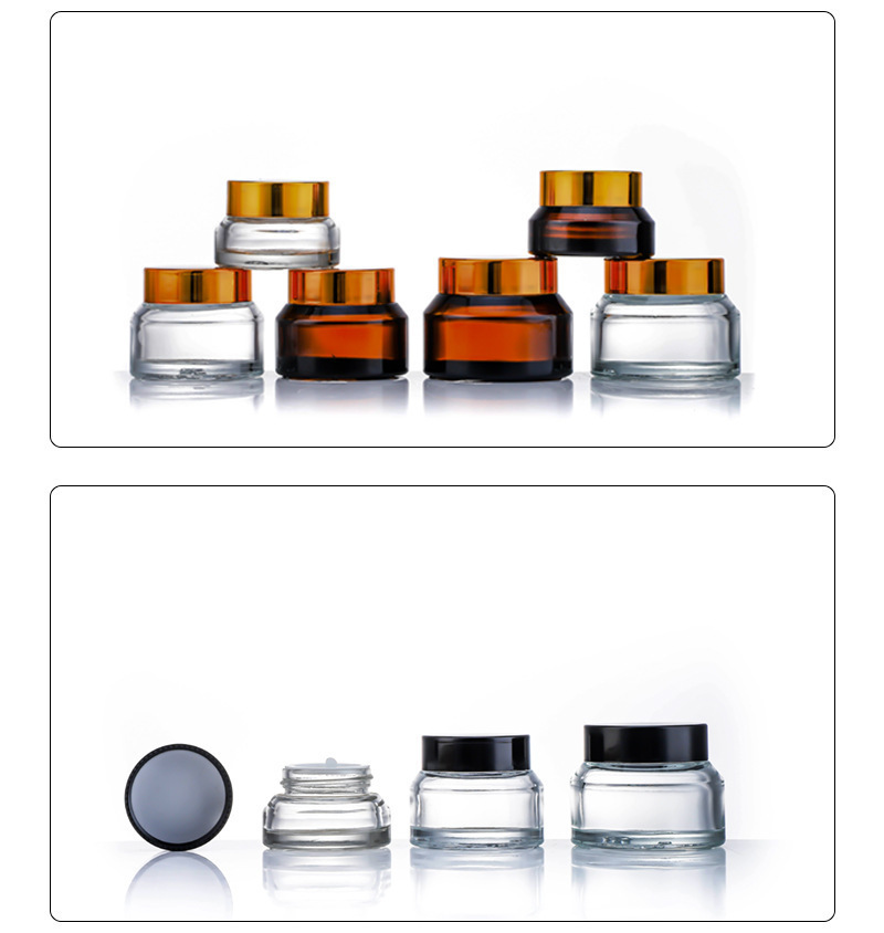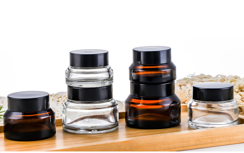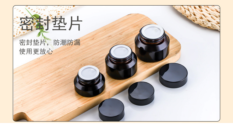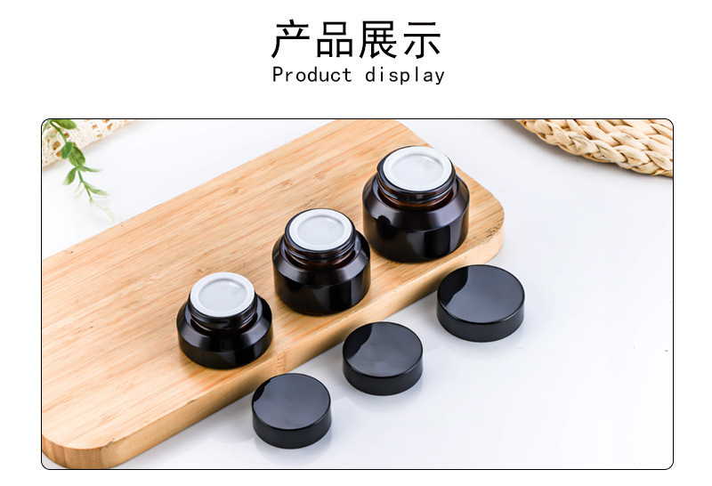 メーカー直販高級ファッション斜め肩ガラスクリーム瓶空瓶スキンケア品分注瓶黒蓋茶色クリーム缶