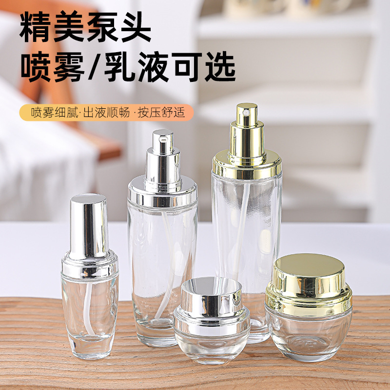 现货透明玻璃乳液瓶按压式精华液瓶30g膏霜瓶眼霜瓶化妆品瓶