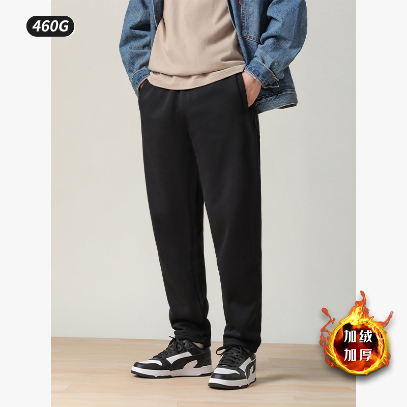 ジッパー付きポケット、裏起毛、厚手460g、メンズロングパンツ、2025年冬新作、細い裏起毛、ゆったりカジュアルメンズロングパンツ