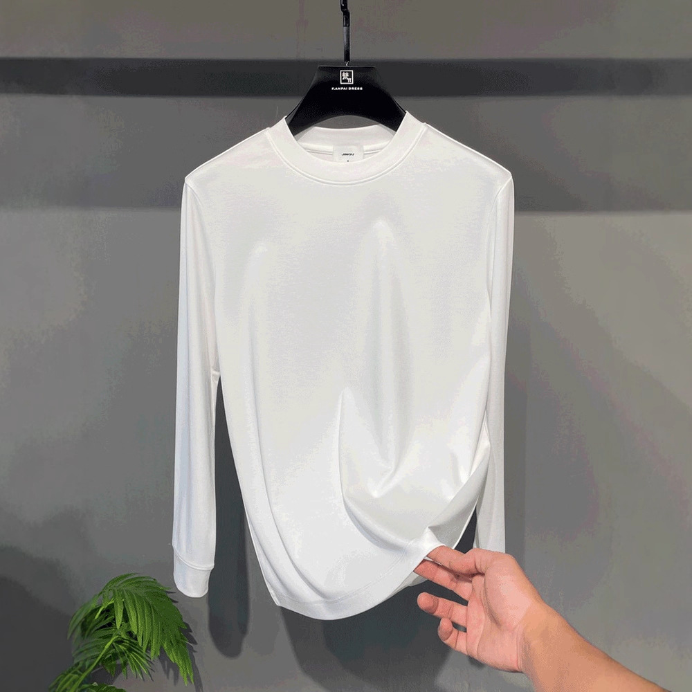 【奢享丝滑】轻奢高端长袖T恤时尚纯色百搭男款休闲圆领打底衫男