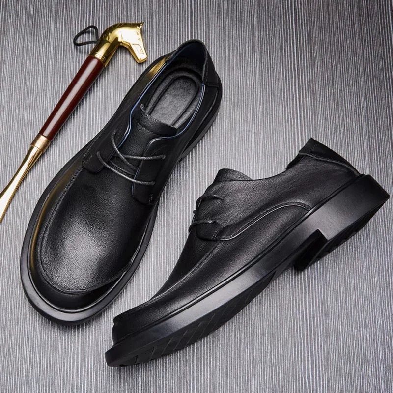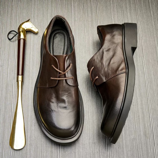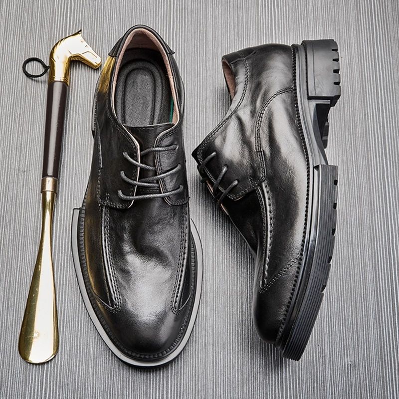 本革一層牛革メンズ秋新作通気性のある紐付き大型革靴ソフトレザー英国風レトロカジュアル革靴