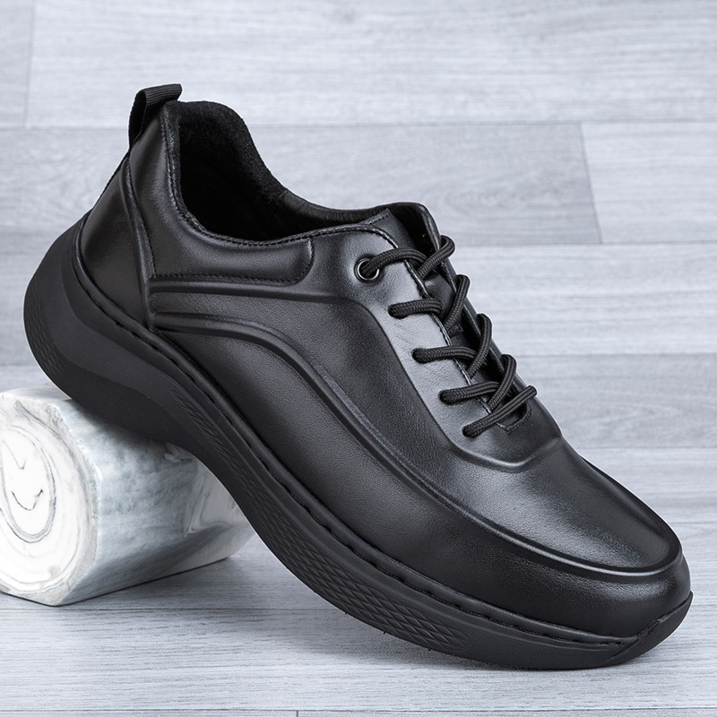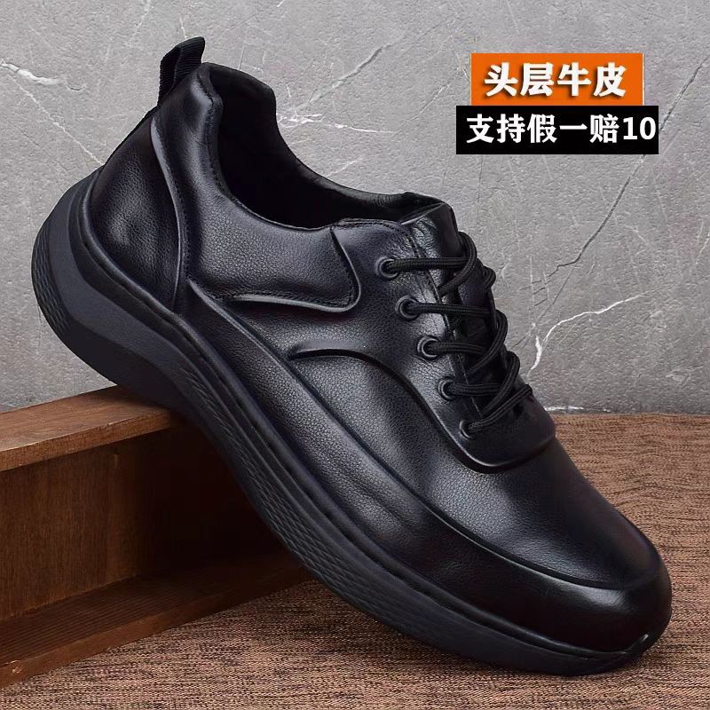 本革一層牛革スポーツシューズメンズ、秋用通気性厚底超軽量カジュアルシューズ、ランニングシューズ、冬用裏起毛