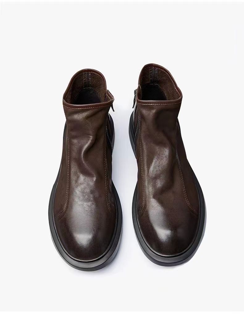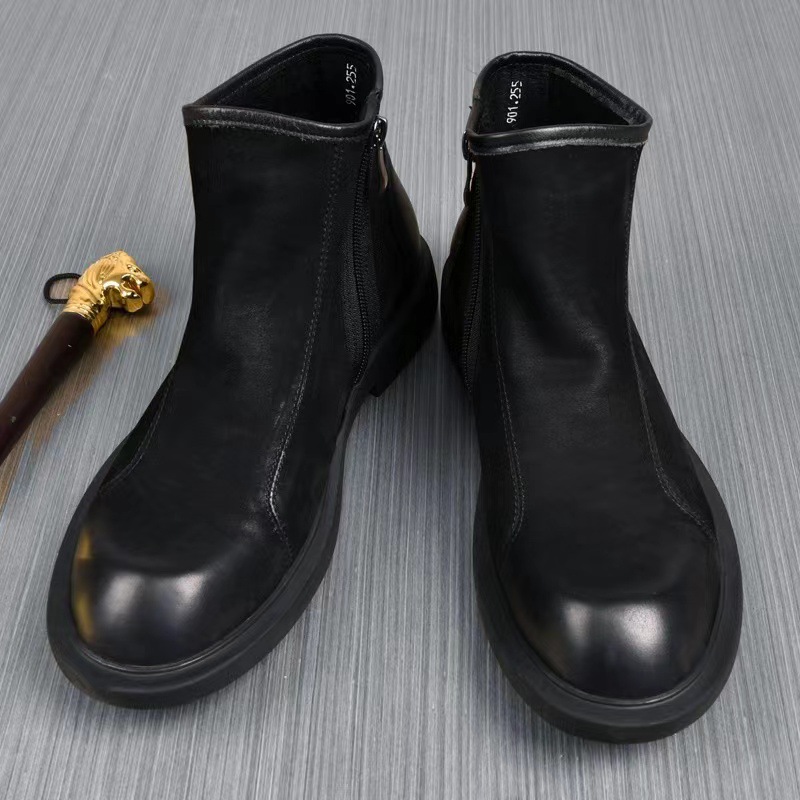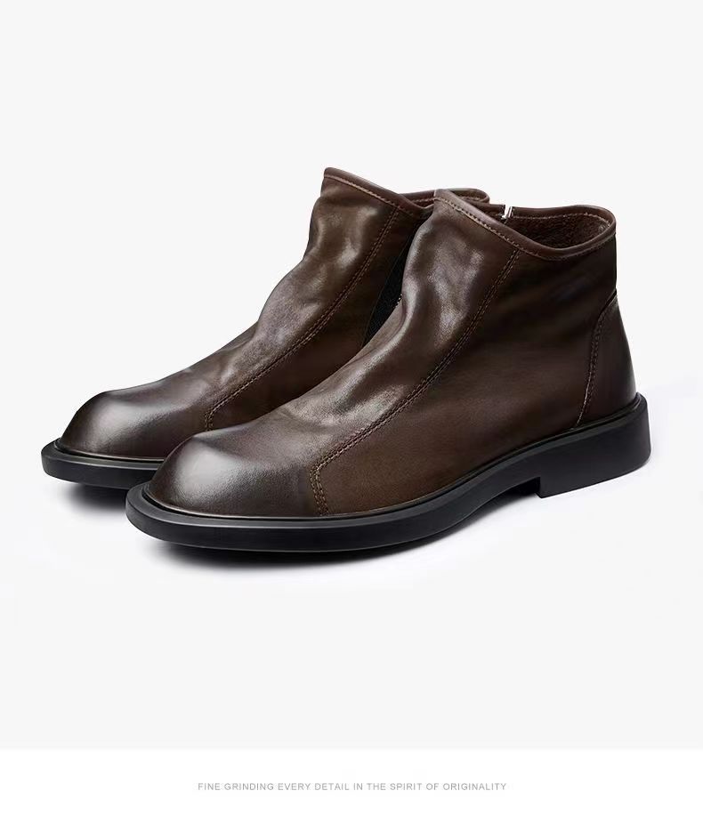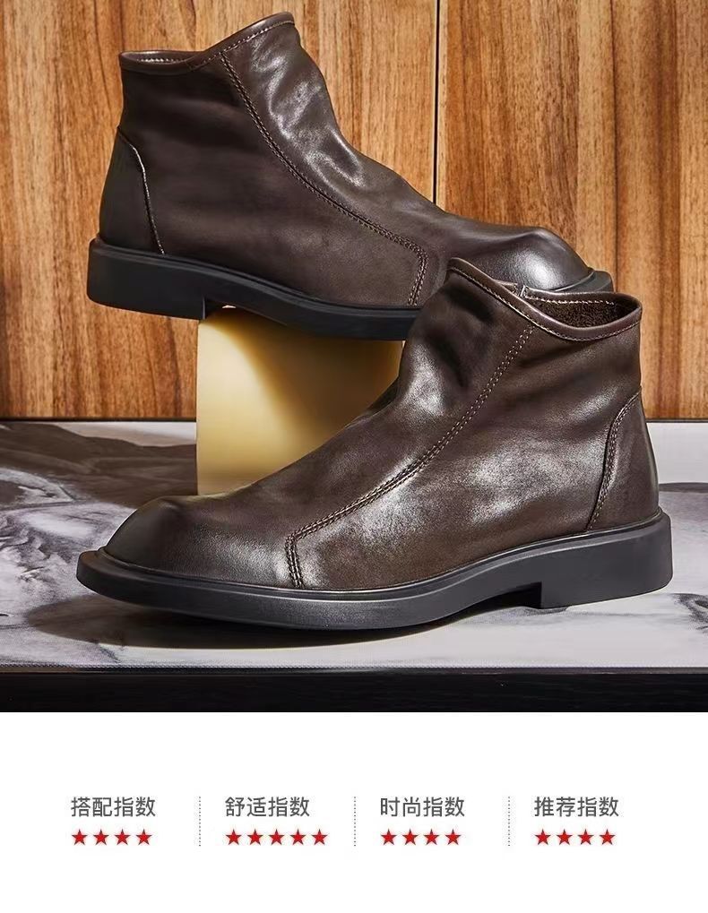 英国風レトロ本革ブーツ メンズ 秋 ミドル丈 マーティンブーツ ジッパー付き チェルシー ソフトレザー カジュアルブーツ
