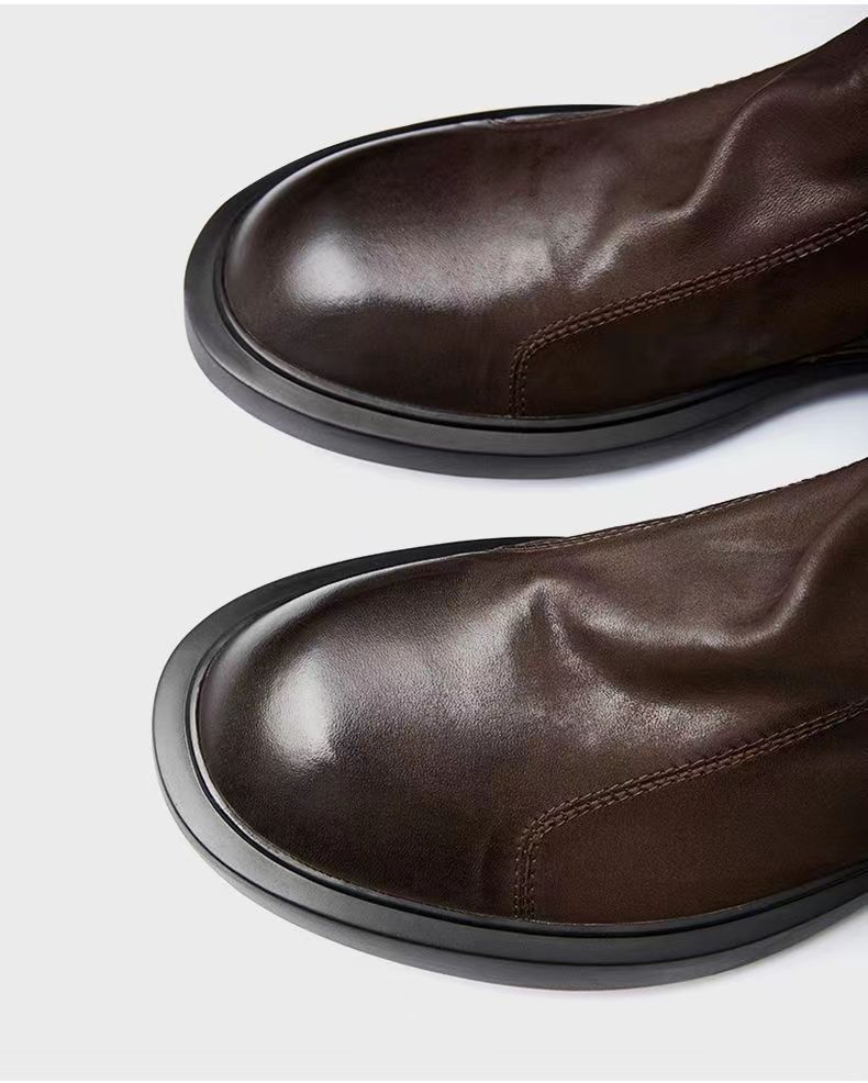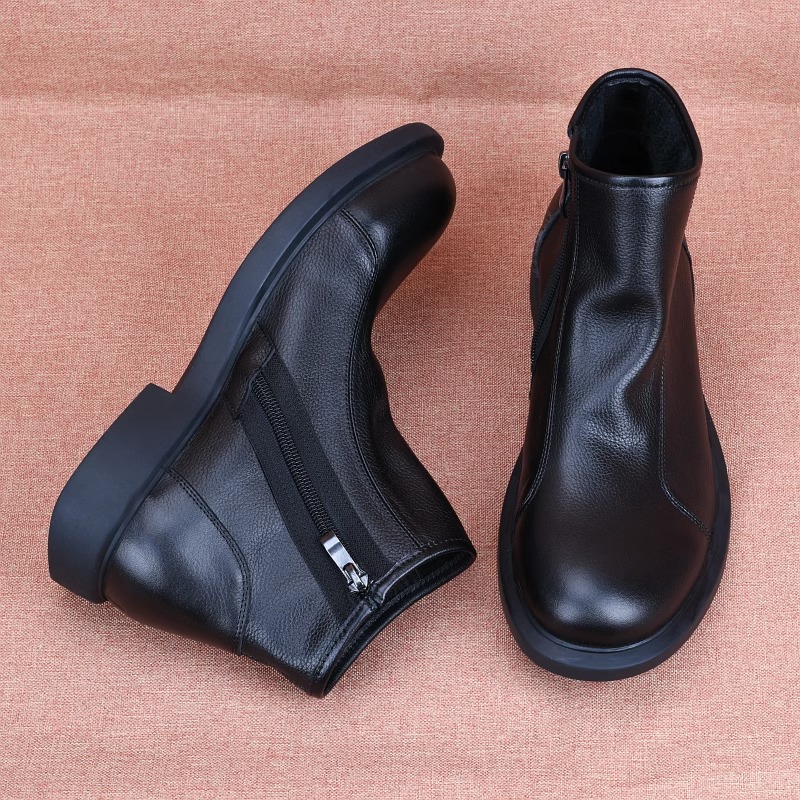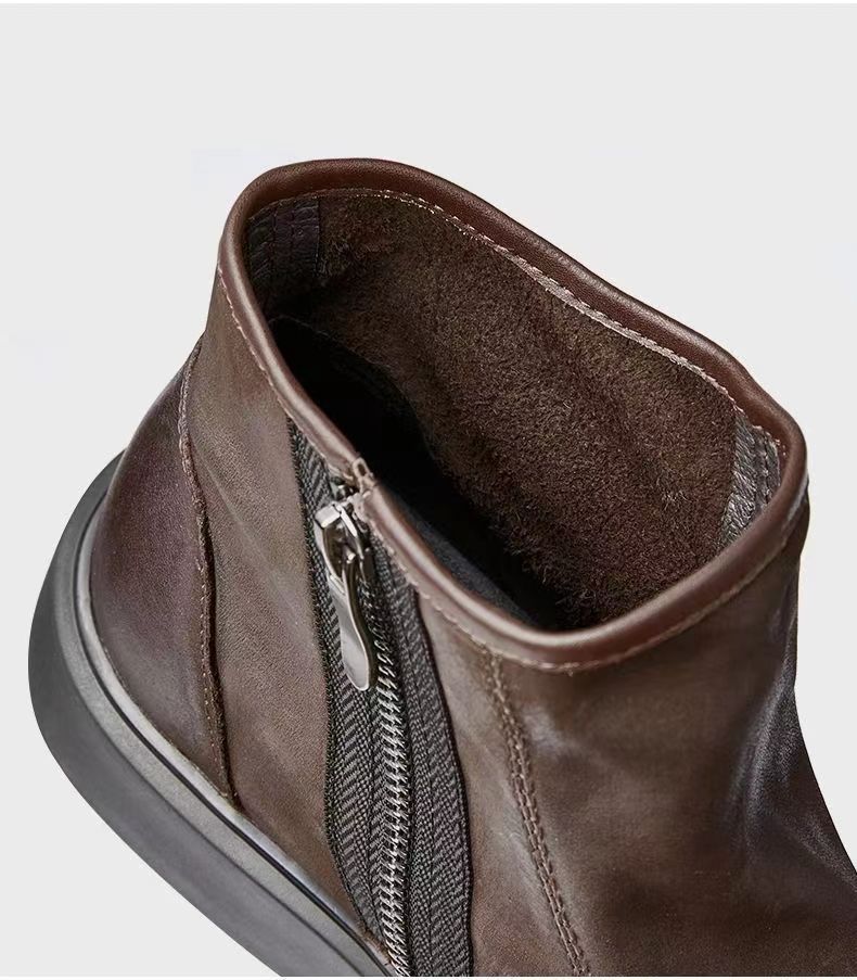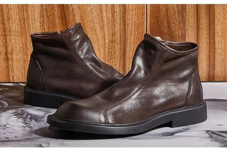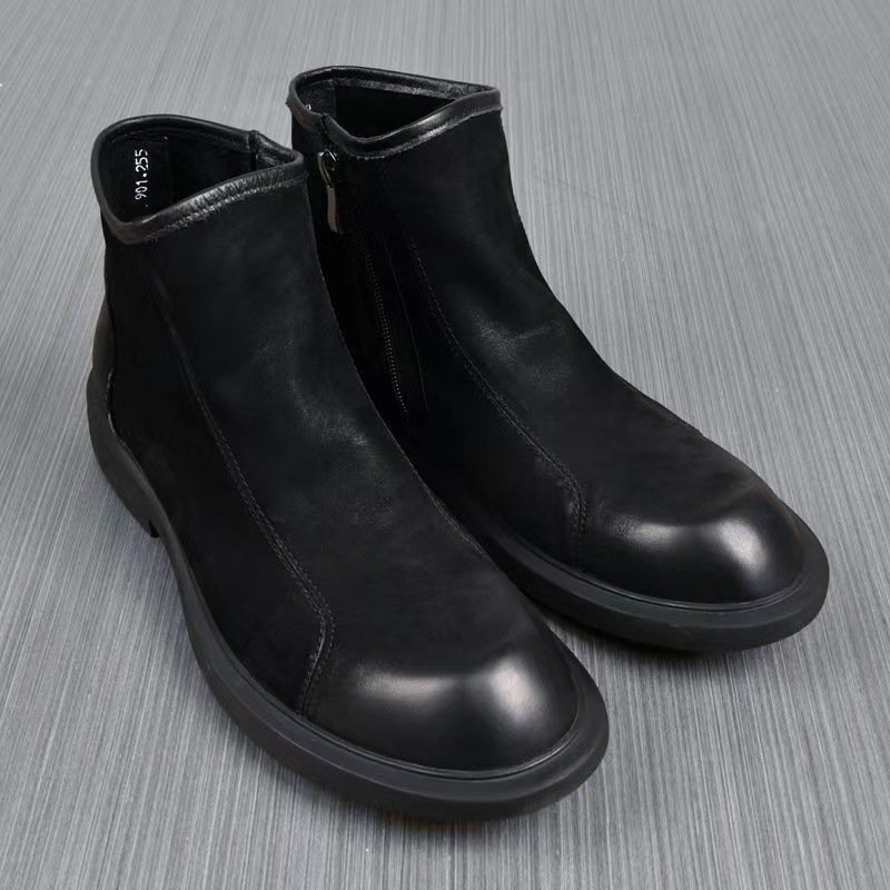 英国風レトロ本革ブーツ メンズ 秋 ミドル丈 マーティンブーツ ジッパー付き チェルシー ソフトレザー カジュアルブーツ
