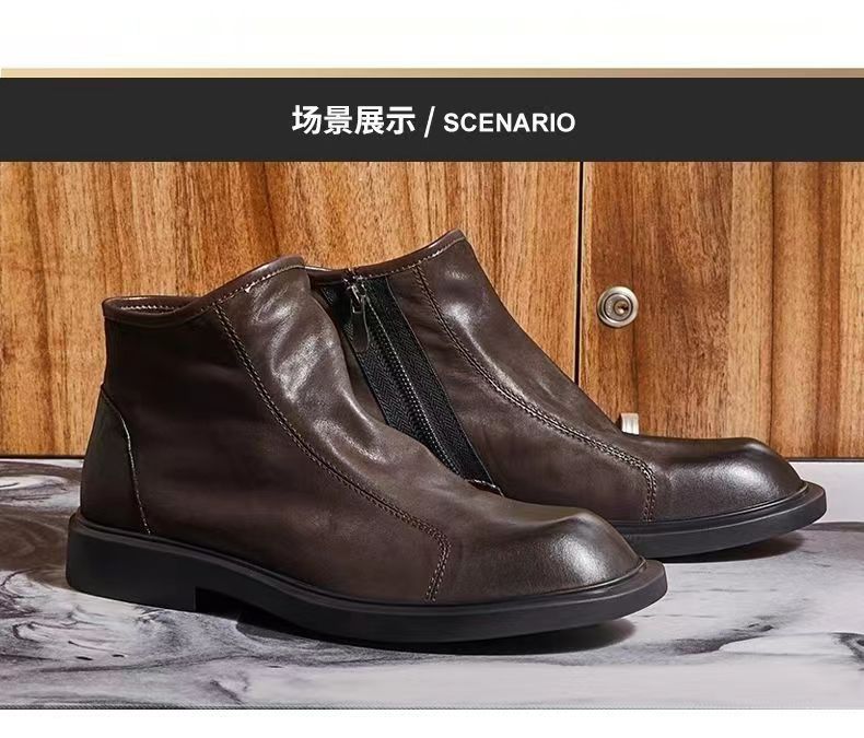 本革一層牛革ハイカットレザーブーツメンズ秋冬裏起毛英国風レトロマーティンブーツチェルシーカジュアルショートブーツ