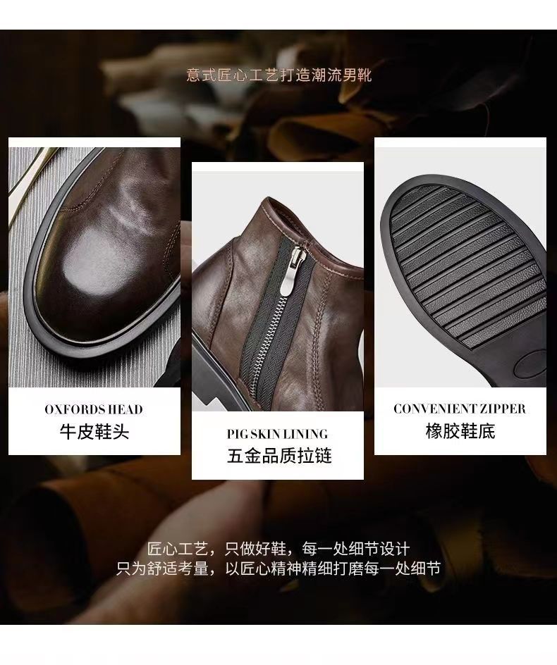 2025秋冬新款男鞋头层牛皮真皮商务高帮皮鞋男系带中帮马丁靴休闲