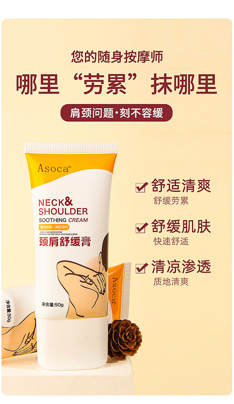 Asoca肩首マッサージクリームは肩首の痛みを和らげて肉をリラックスさせます。