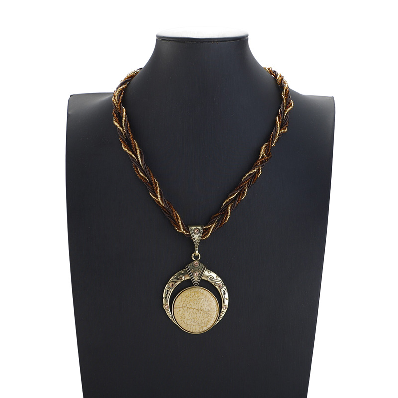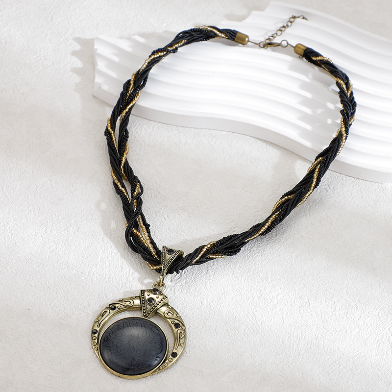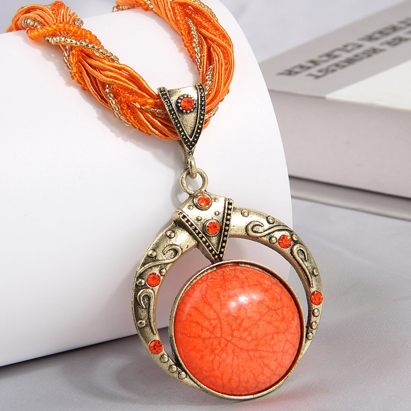 ヨーロッパとアメリカのファッションボヘミアン手織りネックレスエスニックスタイルレトロ中空ラウンドペンダントセーターチェーン