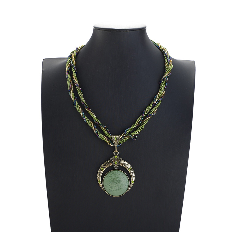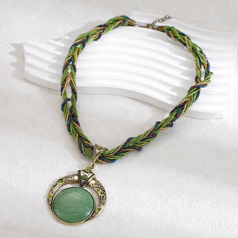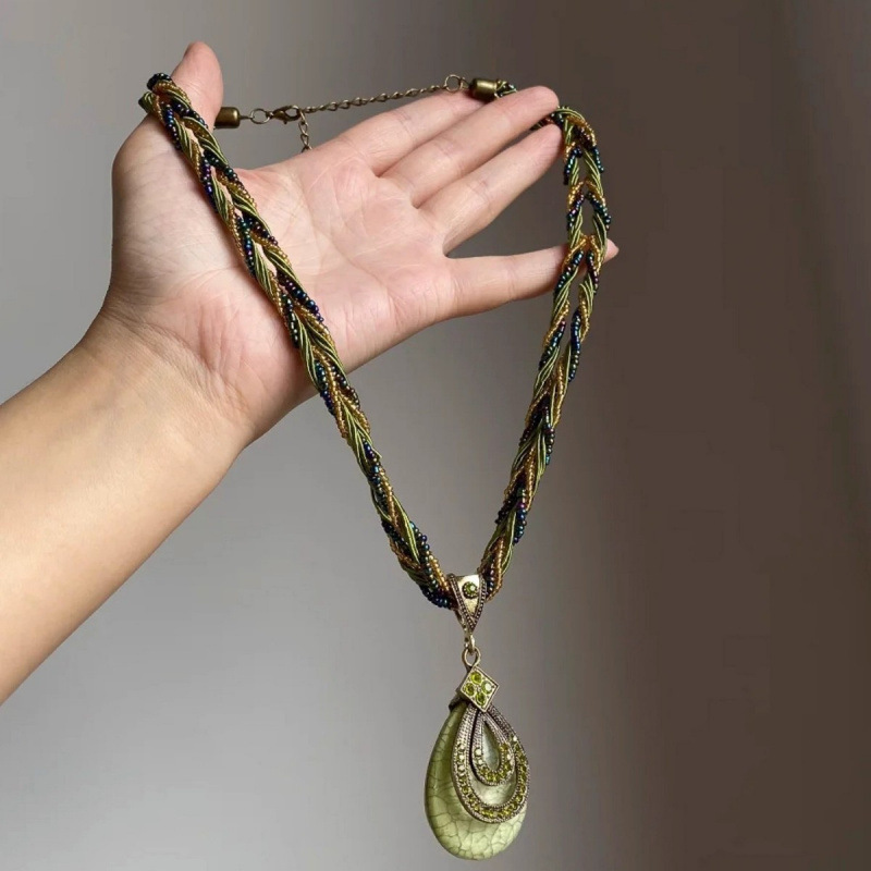 波西米亚民族风绿色缠绕项链小众设计感水滴吊坠颈链个性时尚颈饰