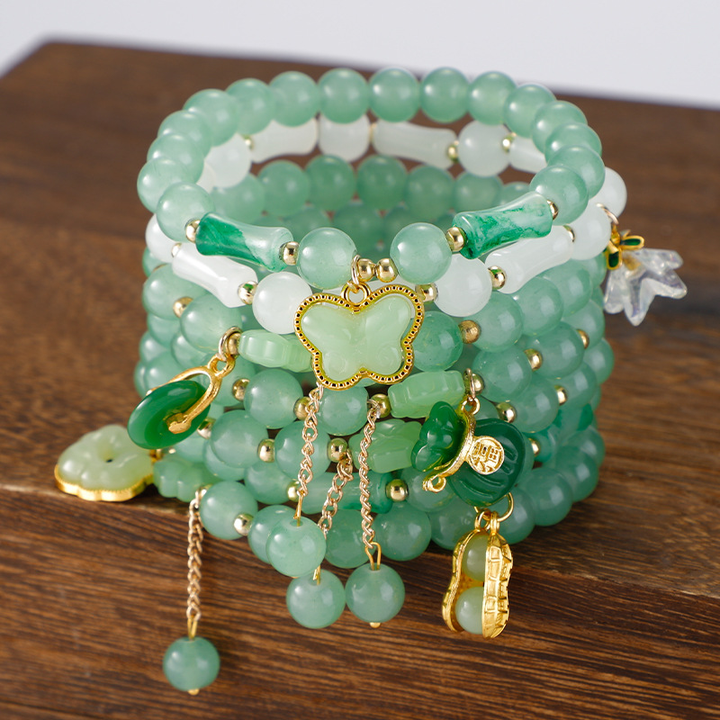 新商品の蝶流蘇瑠璃ブレスレット女子学生ins小衆デザイン森系甘い緑数珠アクセサリー