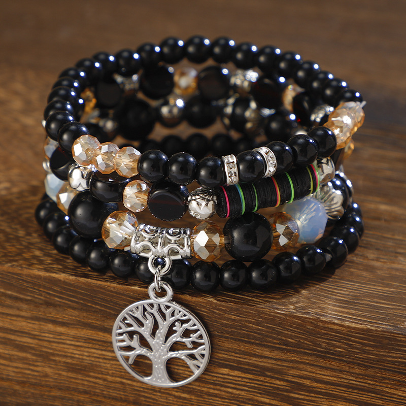 ファッションボヘミアン多層生命木ペンダントブレスレット手作りビーズセット人工水晶ガラスアクセサリー