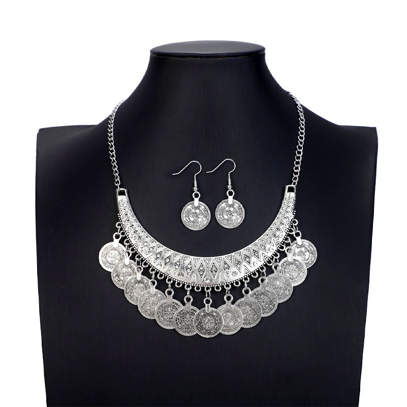 国境を越えた欧米の宮廷のレトロな彫刻の花のドリルのネックレスの貨幣のフリンジの毛の服のチェーンのダンスの復古の硬貨の装飾品