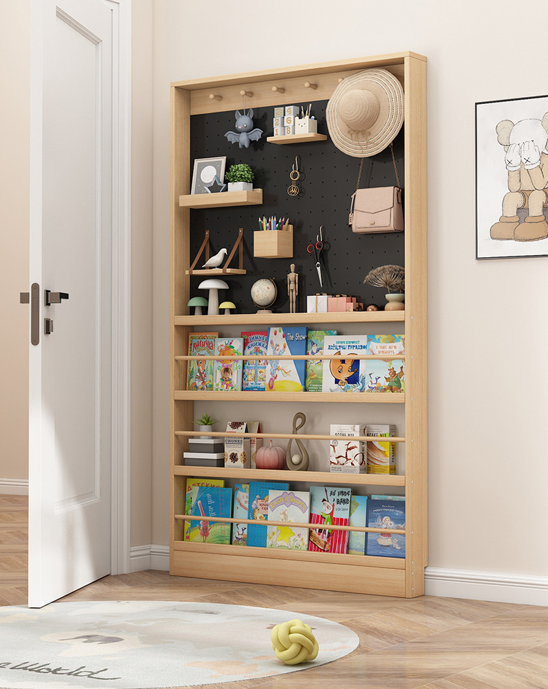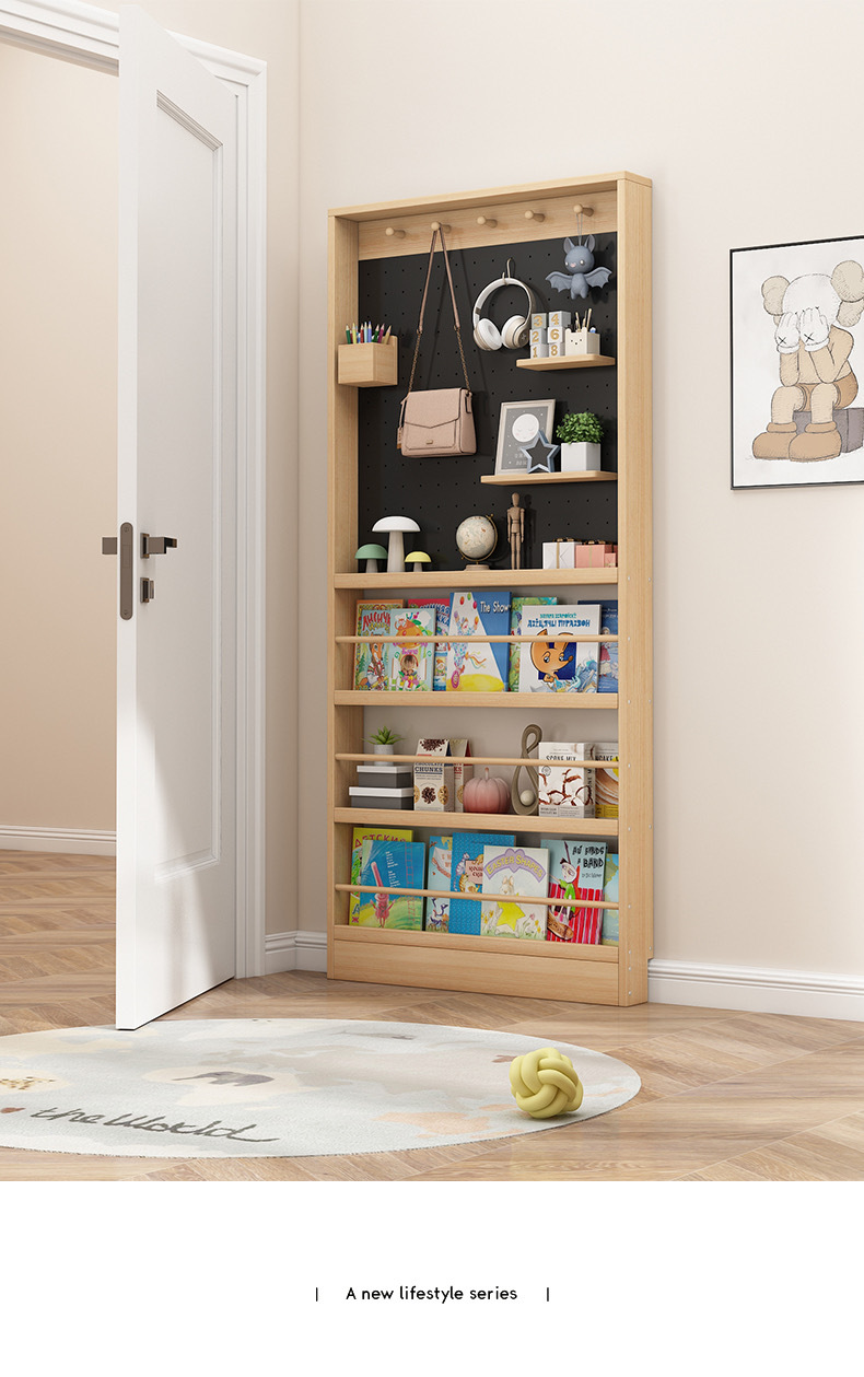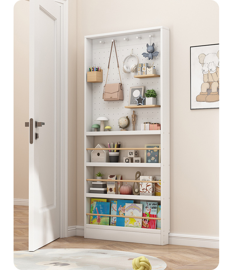 门后超薄钢制书架置物架落地一体靠墙窄款洞洞板儿童绘本架收纳架