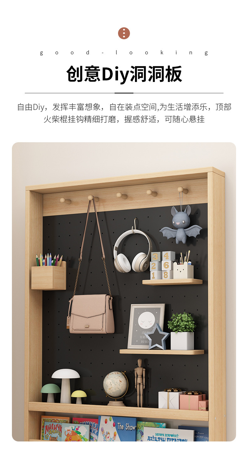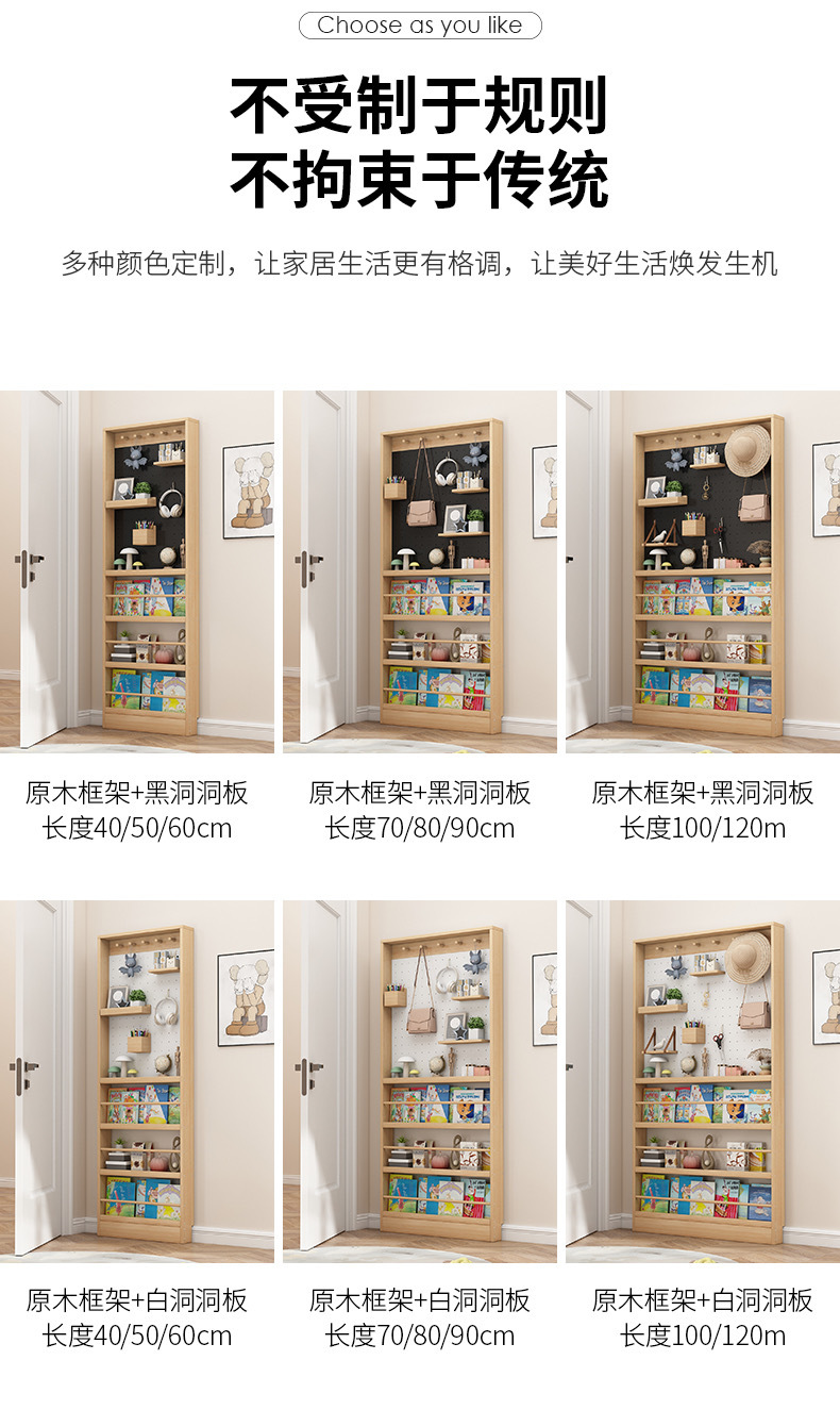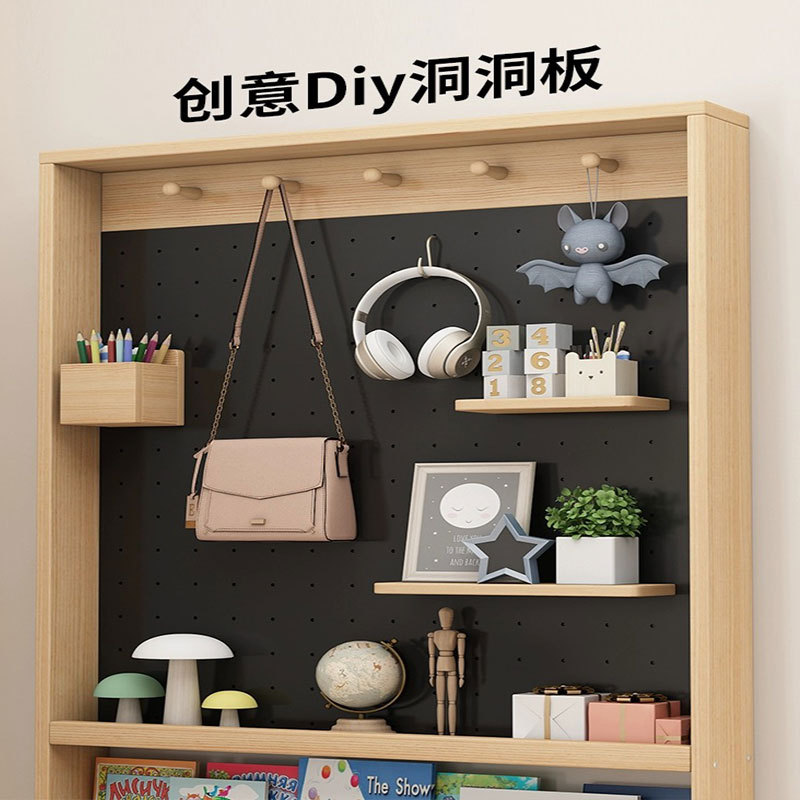 门后洞洞板置物架实木落地极窄儿童绘本架书架超薄靠墙收纳柜薄柜