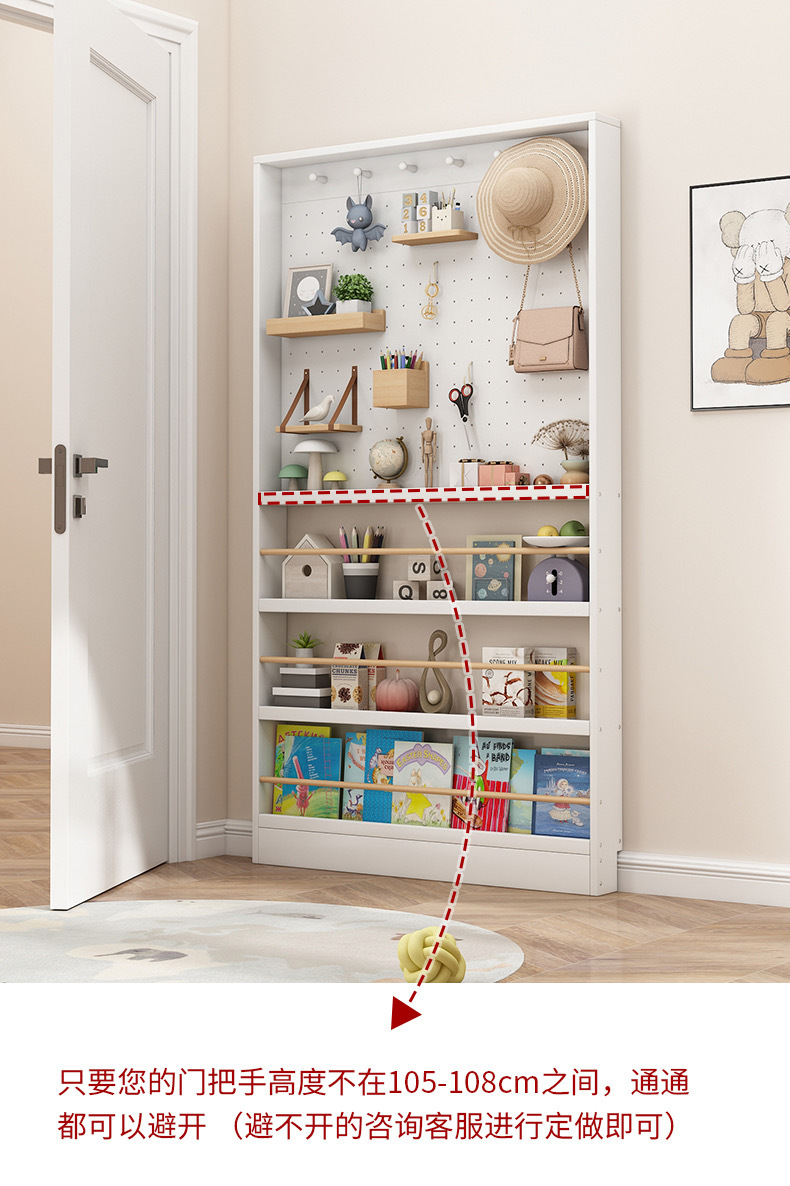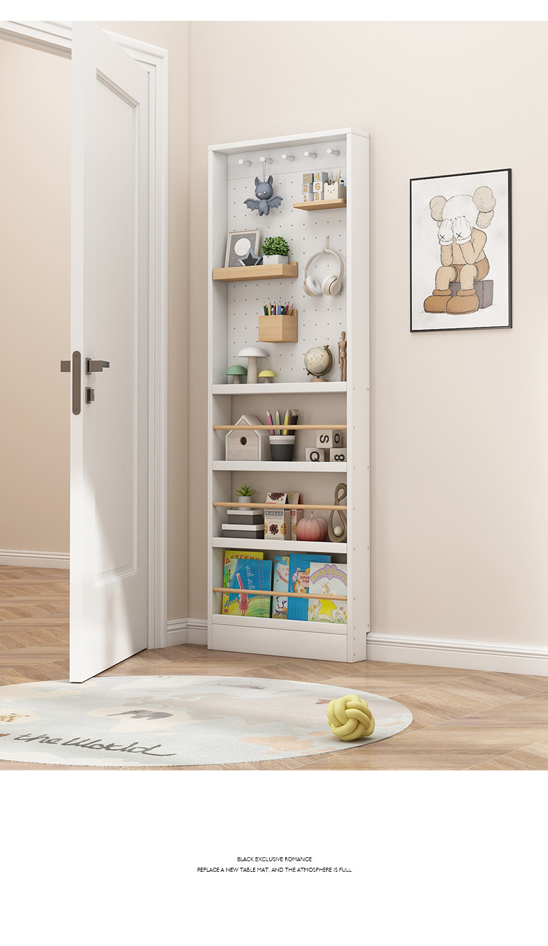 门后超薄钢制书架置物架落地靠墙窄款门后绘本架收纳架子带洞洞板