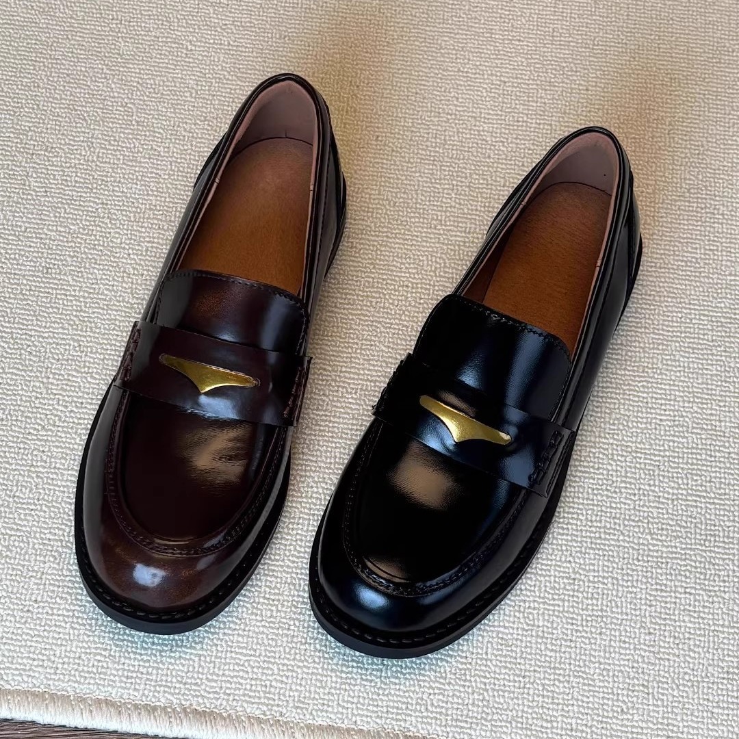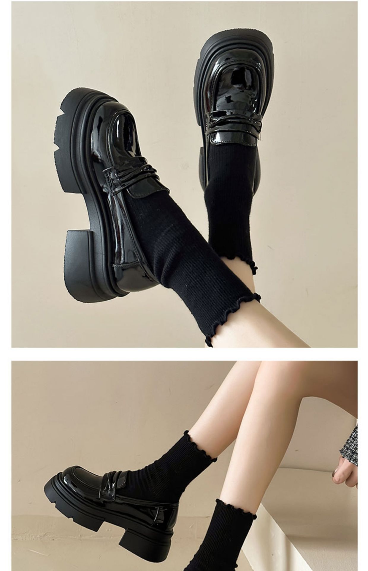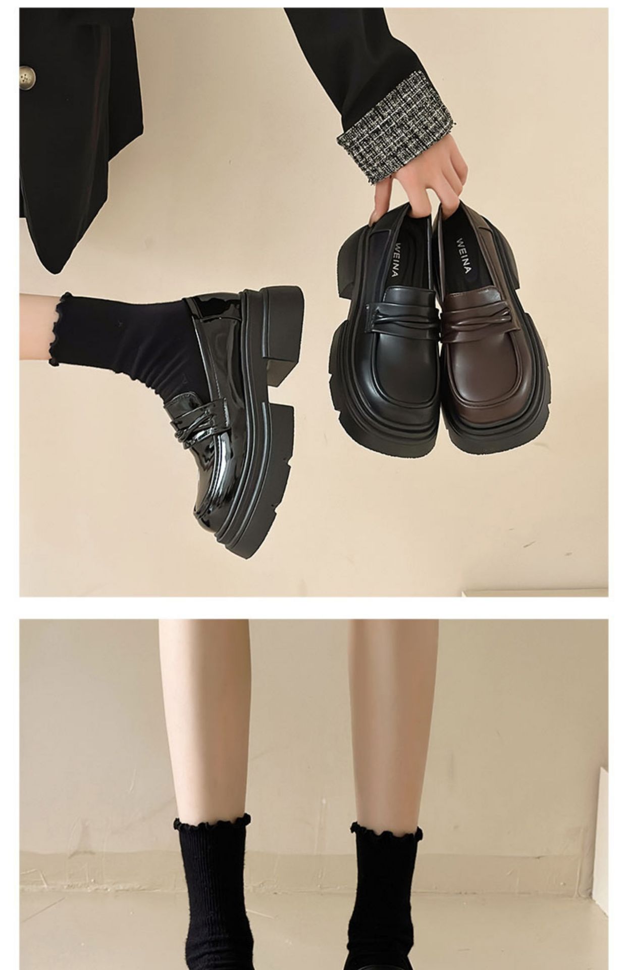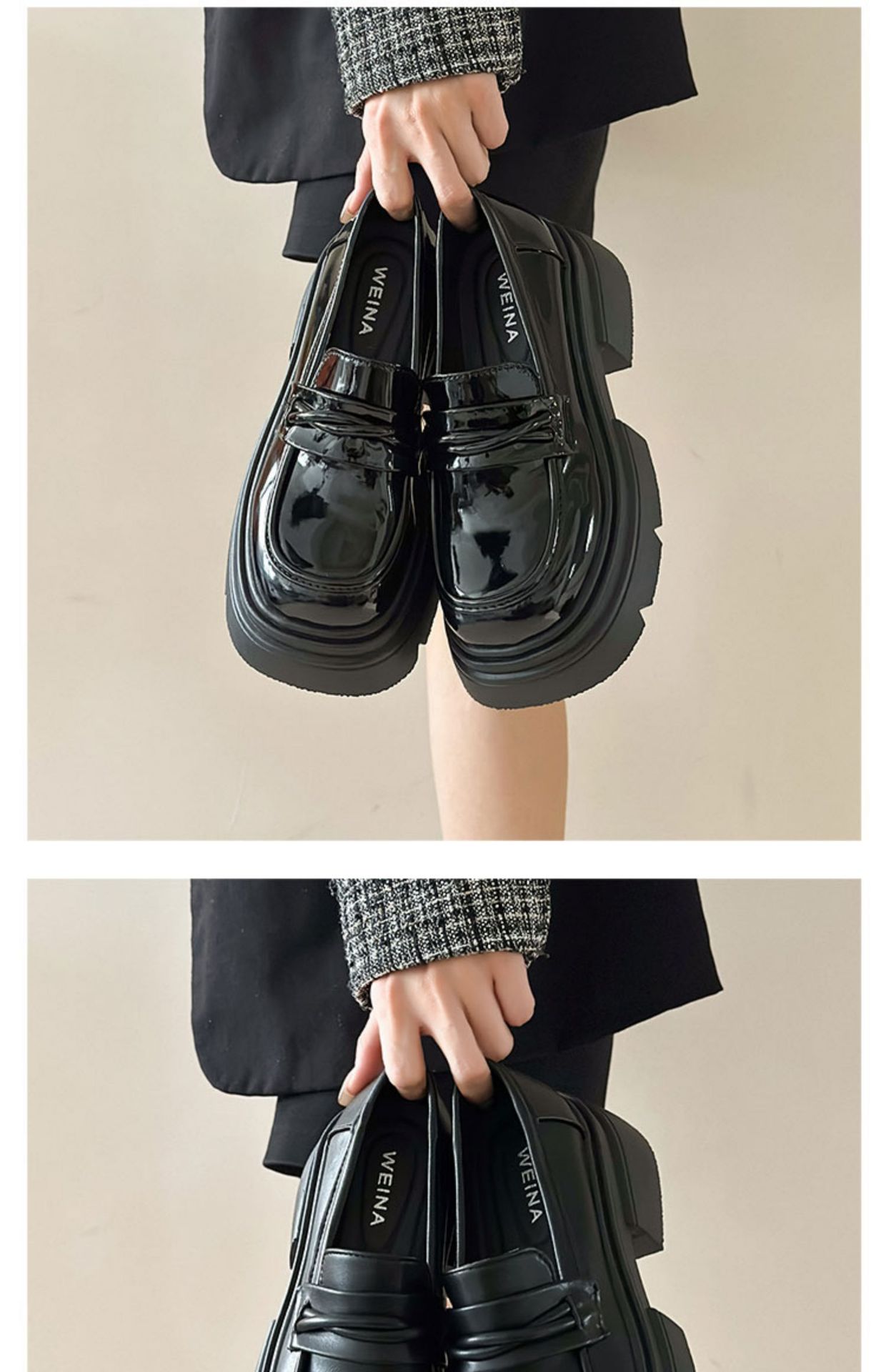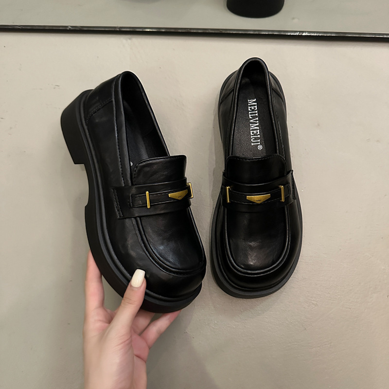 英倫風の厚い底の太さと黒い楽福の靴の小さい革靴の女性の2024の新型の春の秋の1足は女性の靴のシングル靴を漕ぎます。