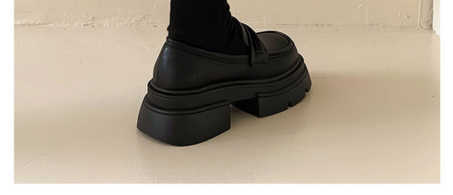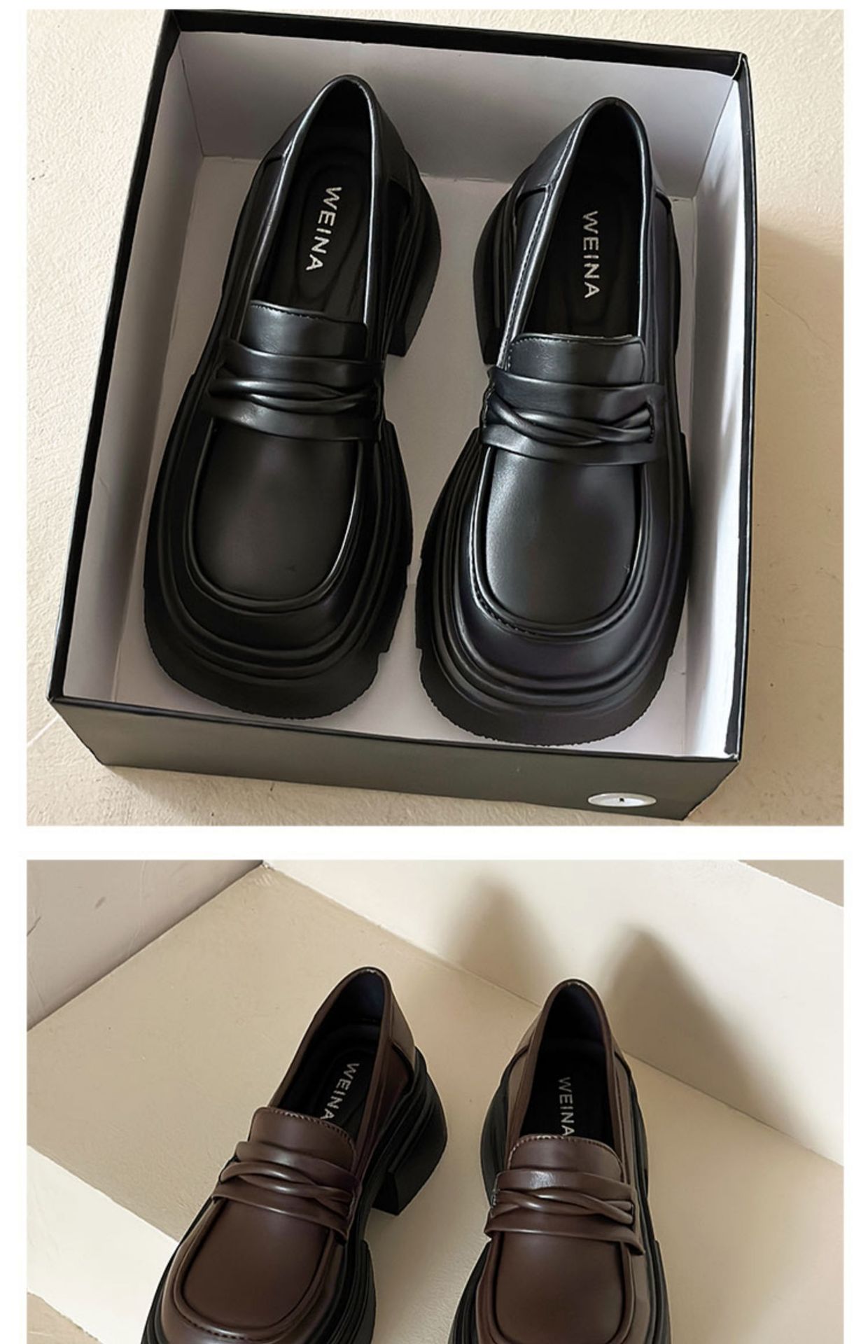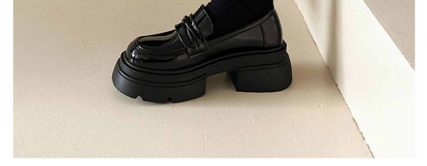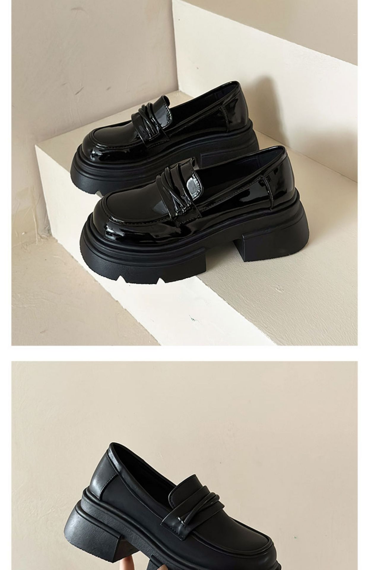 英倫風の厚い底の太さと黒い楽福の靴の小さい革靴の女性の2024の新型の春の秋の1足は女性の靴のシングル靴を漕ぎます。