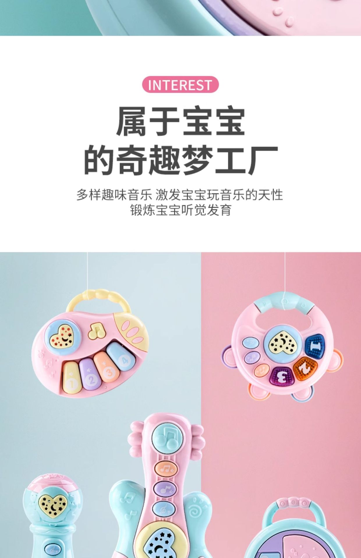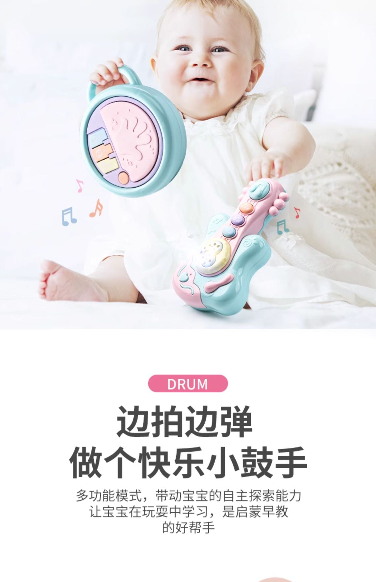 赤ちゃんの音楽の手は太鼓のおもちゃをたたいて、赤ちゃんは早教します。
