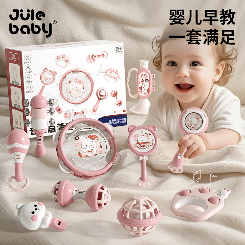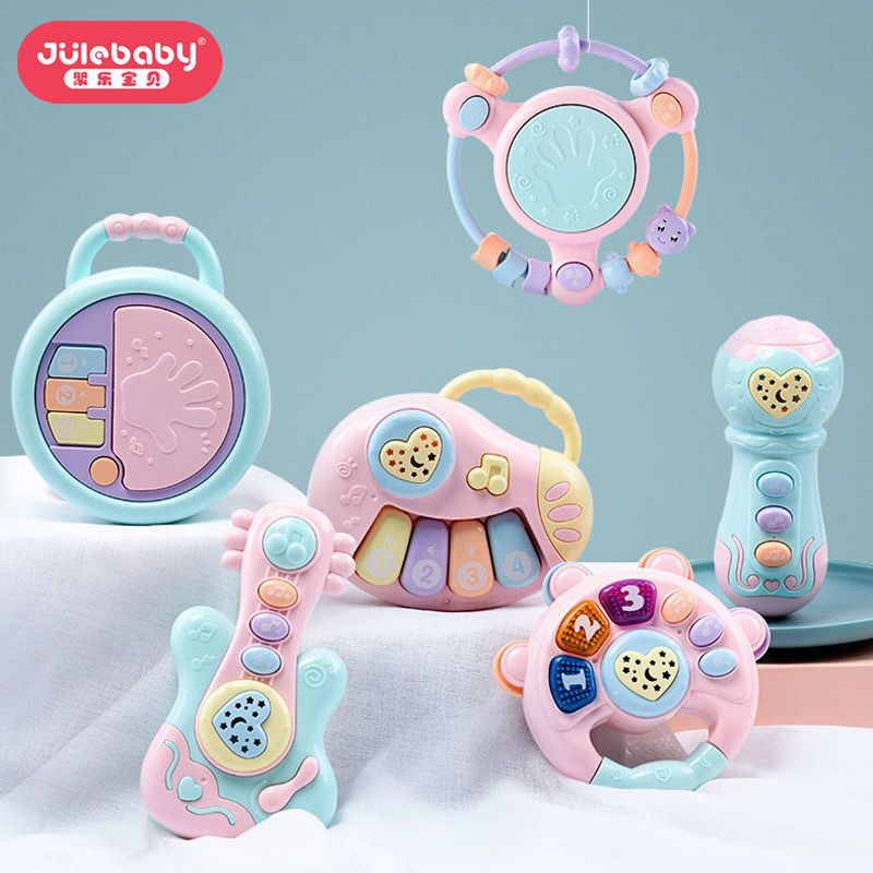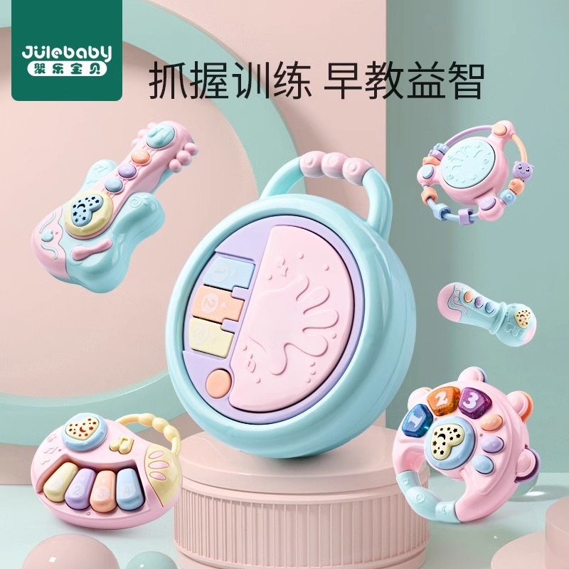 新入生の赤ちゃんが哺乳瓶をなだめて鈴を鳴らすおもちゃの赤ちゃんが握って歯ぎしりできる0月6ヶ月3知育早教1歳