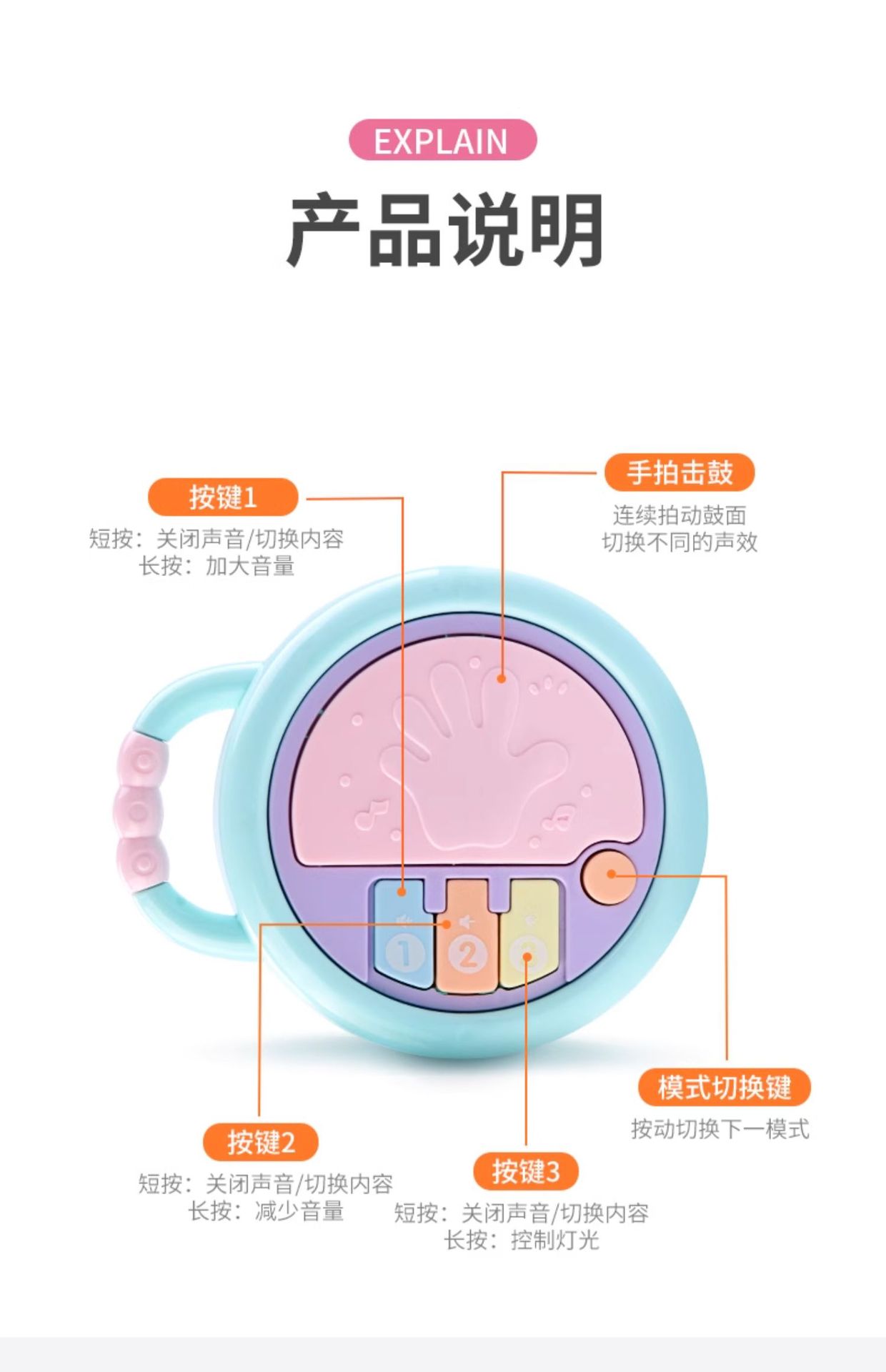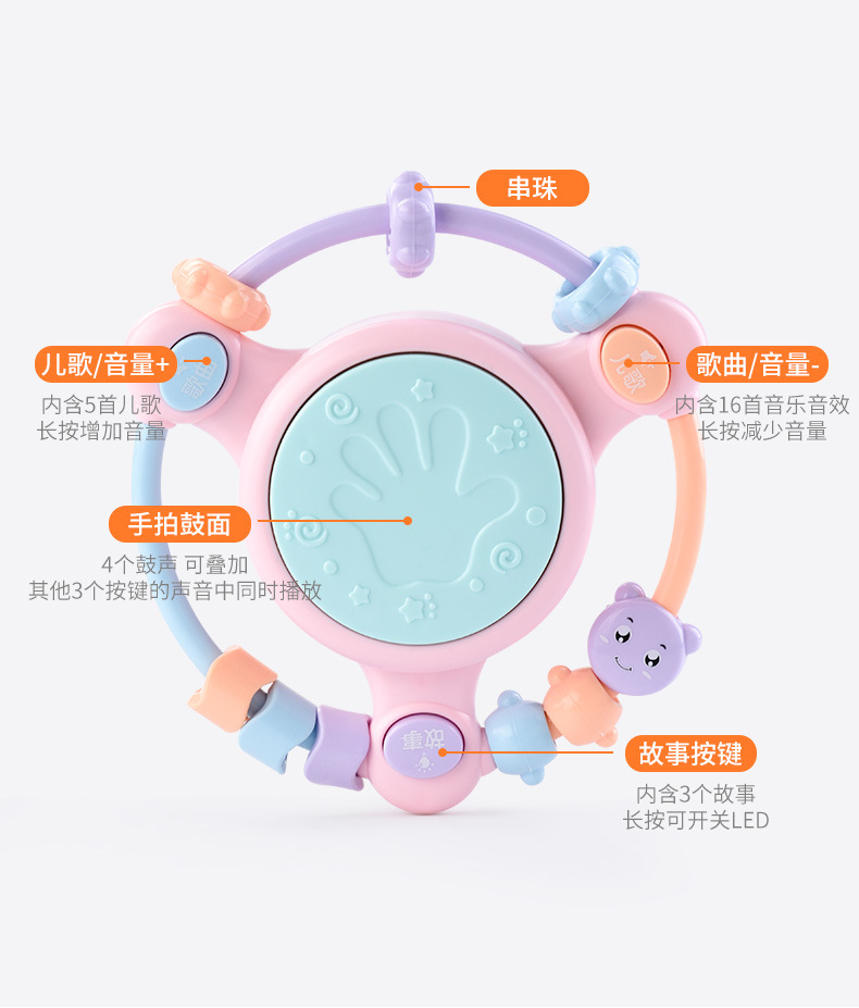 儿童玩具手拍鼓打击乐器宝宝铃鼓益智早教启蒙婴幼儿0-3岁1手摇铃