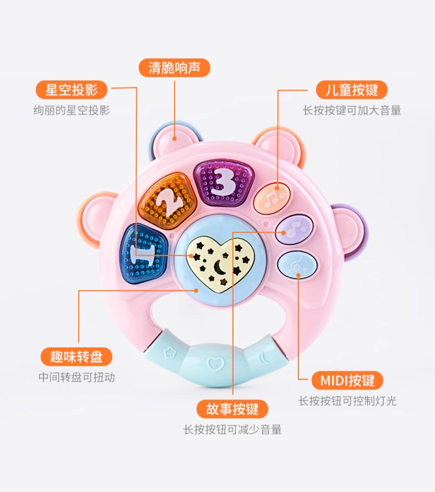 赤ちゃんのおもちゃは太鼓をたたいて多機能です。