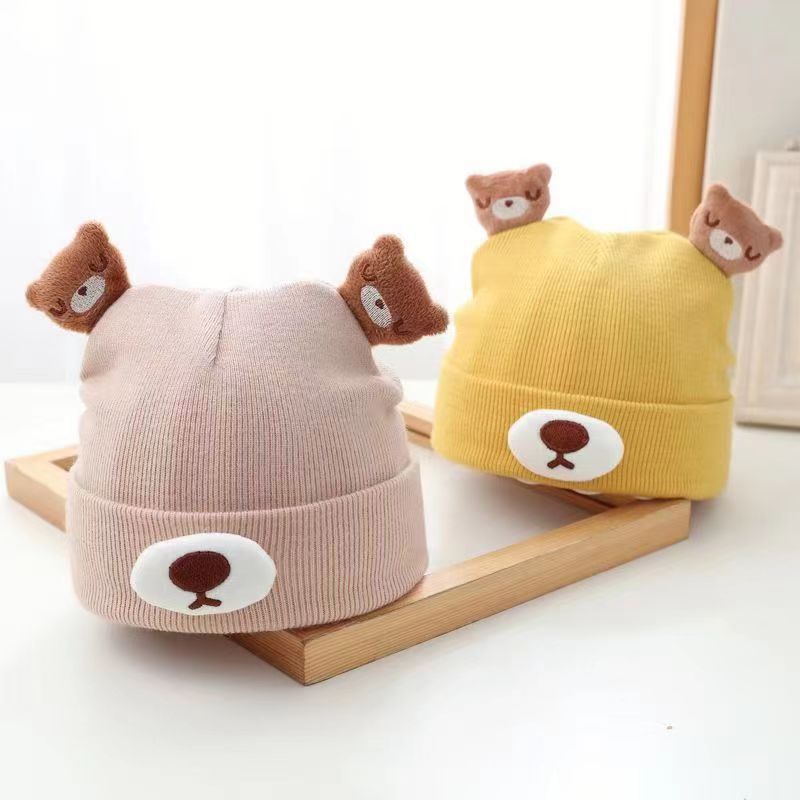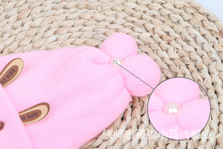 秋冬の新型子供保温帽かわいい熊双球帽赤ちゃん保温耳保護ニット毛糸帽