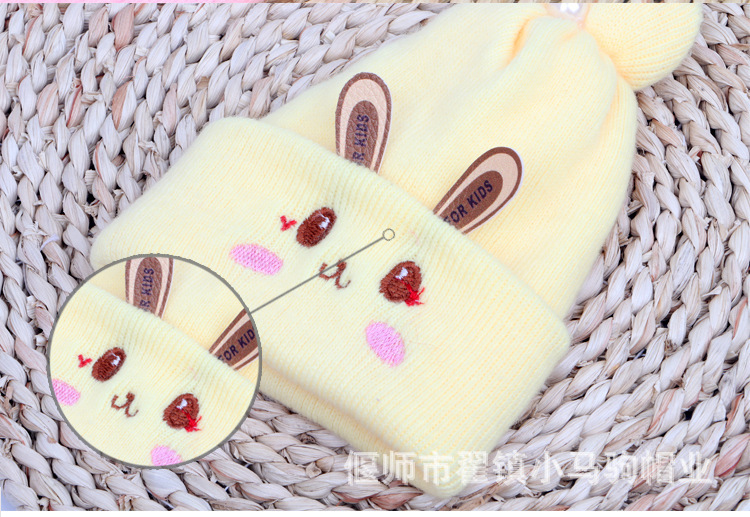 【大量注文】新生児帽子、月齢子供用ウール帽子、かわいいウサギのニット帽、胎児帽子
