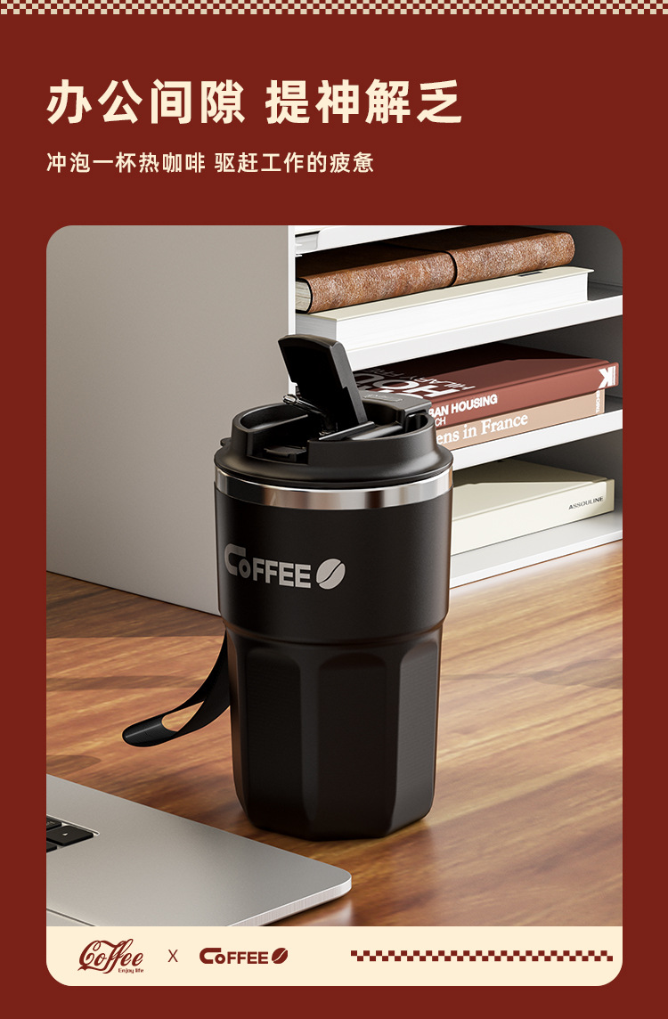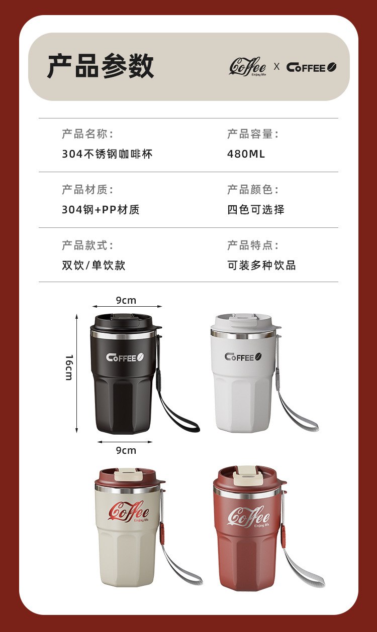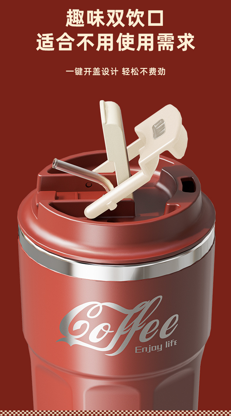 304不锈钢咖啡杯手提随手杯保温保冷户外带吸管螺纹办公便携礼品