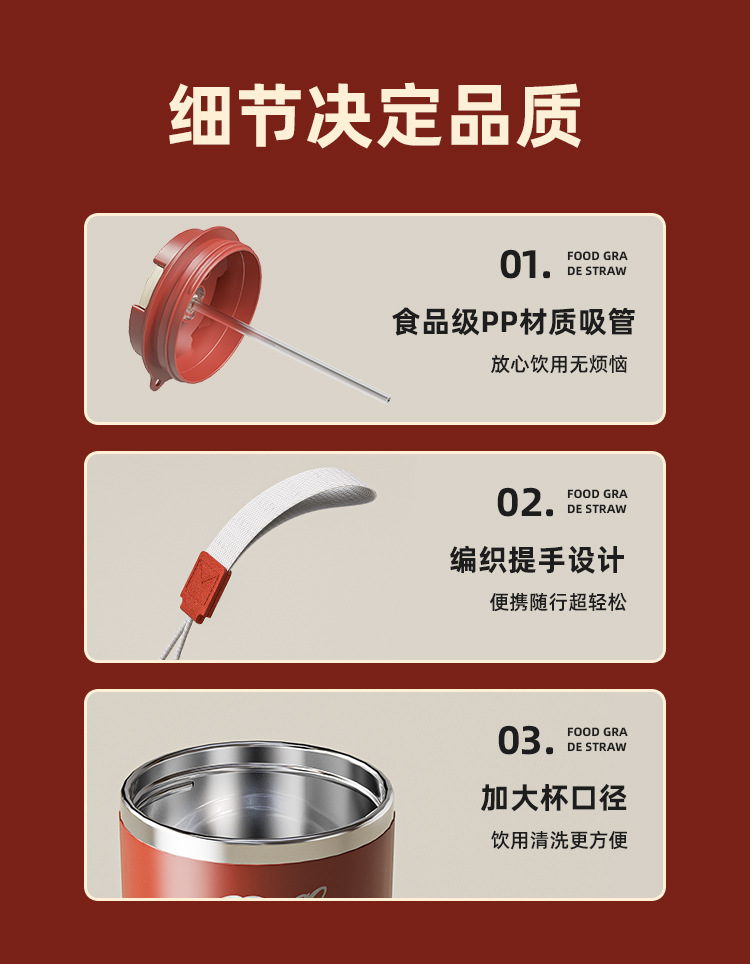 304ステンレス内胆高颜値マグカップ学生携帯大容量ストローカップサラリーマン蓋付きコップ