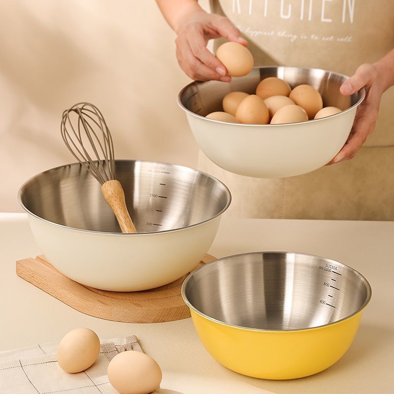 日本製 304 ステンレス鋼のフルーツサラダボウル、スケール付きベーキングと生地の卵を泡立てるボウル家庭用ミキシングボウル