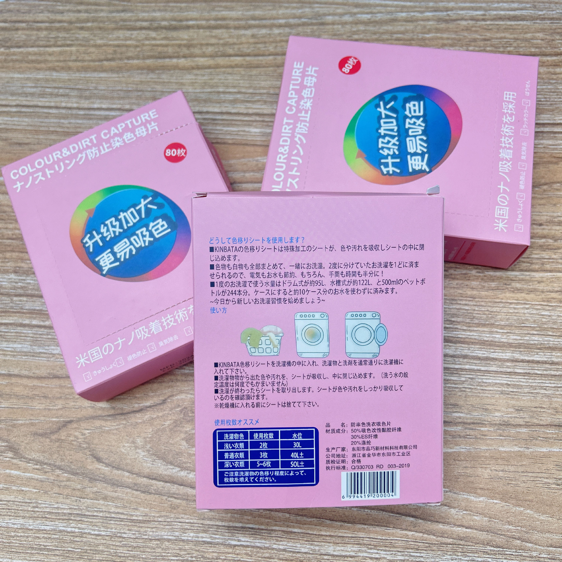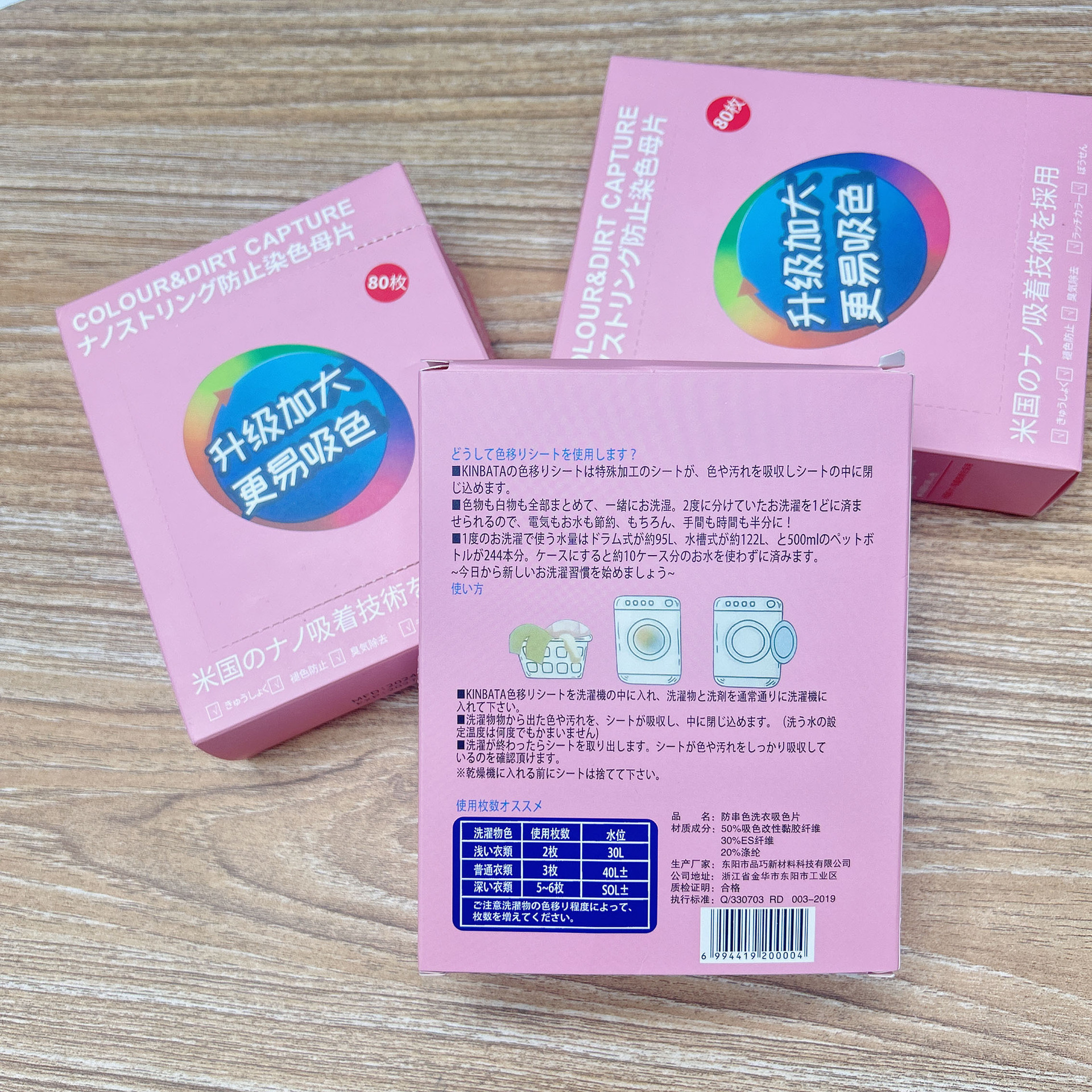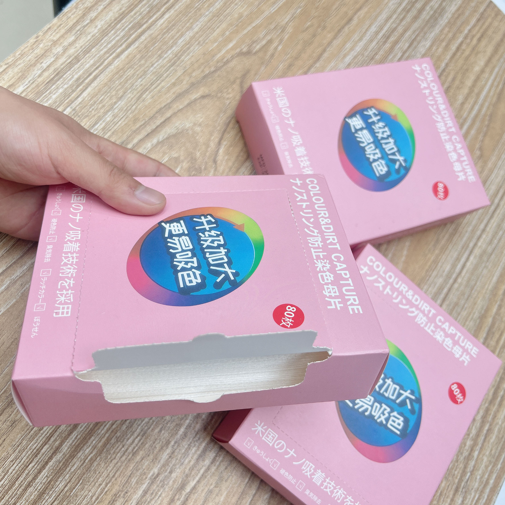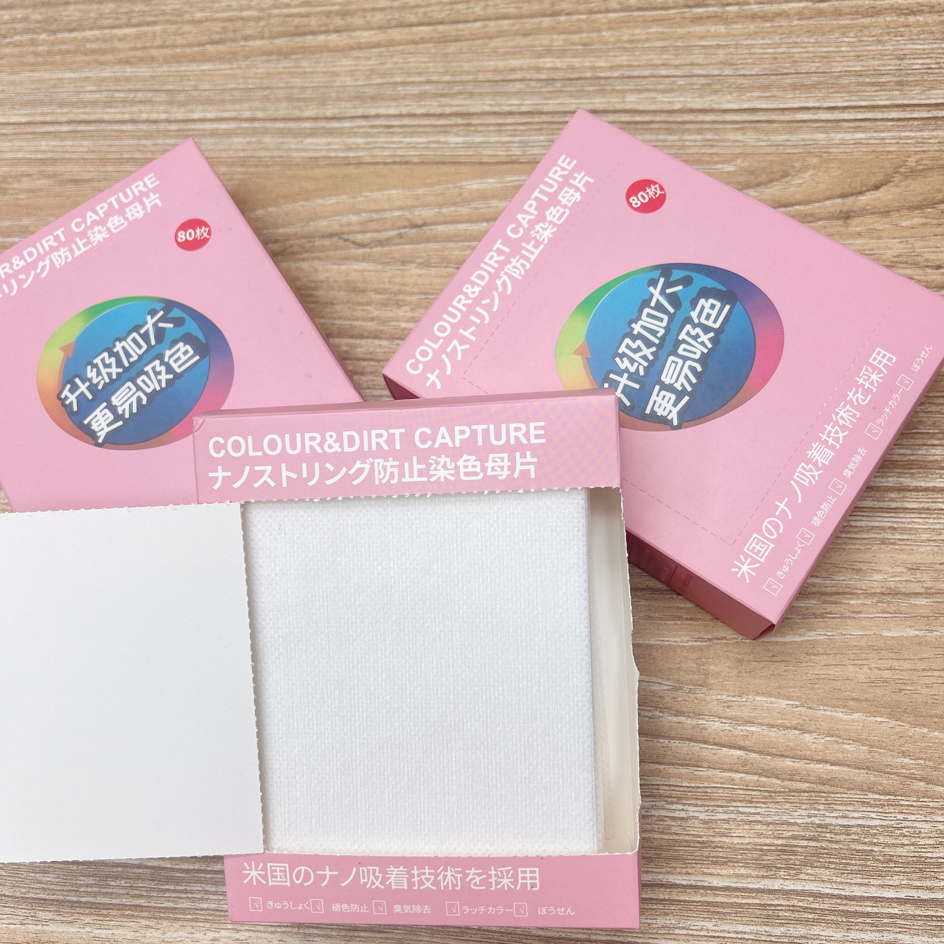 家庭用日常服の色吸いシート、色付き母片洗濯機の色染め防止紙洗濯シート、80枚入りです。