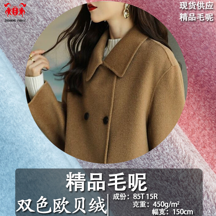 現物の全ポリエステル毛の生地は両面を厚くしています。2022秋冬ラシャコートのファッション服の生地です。