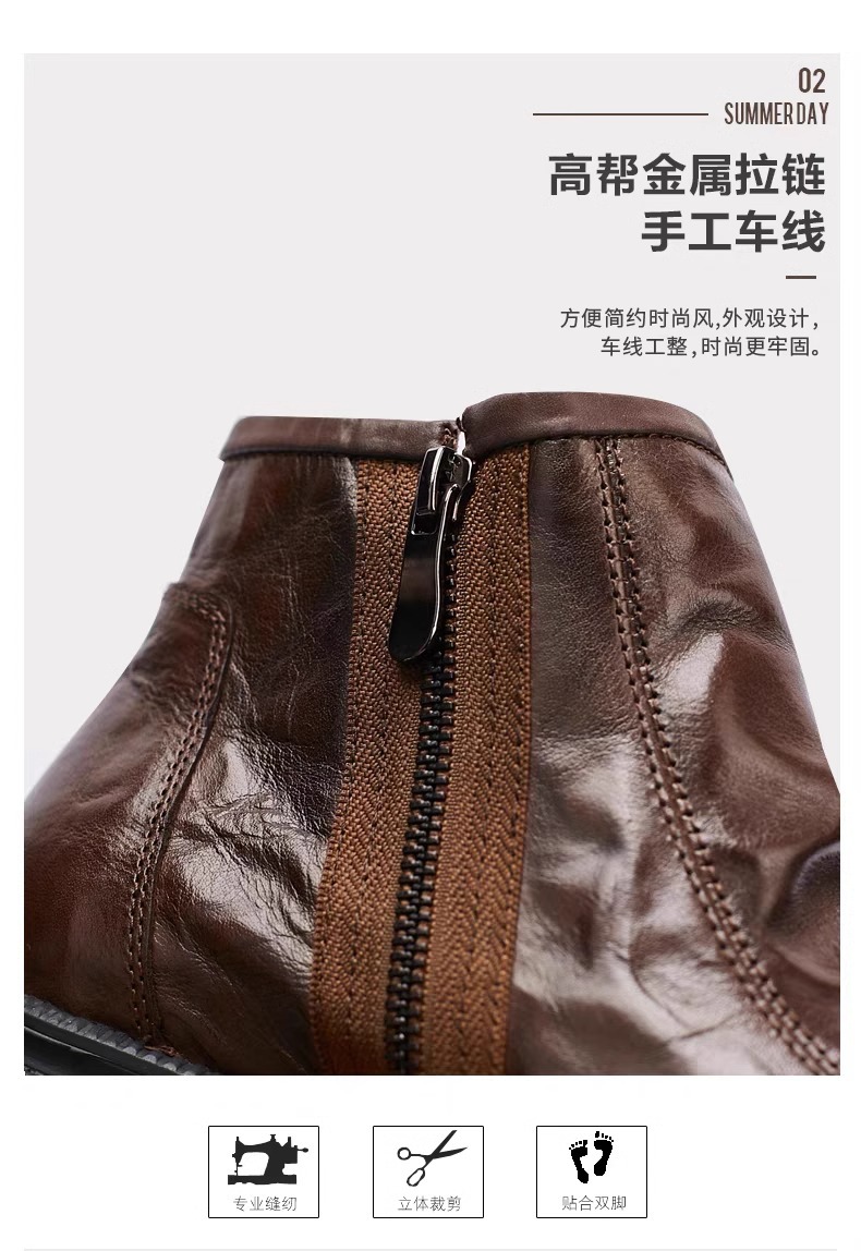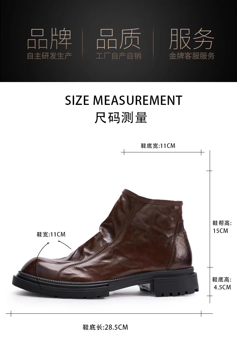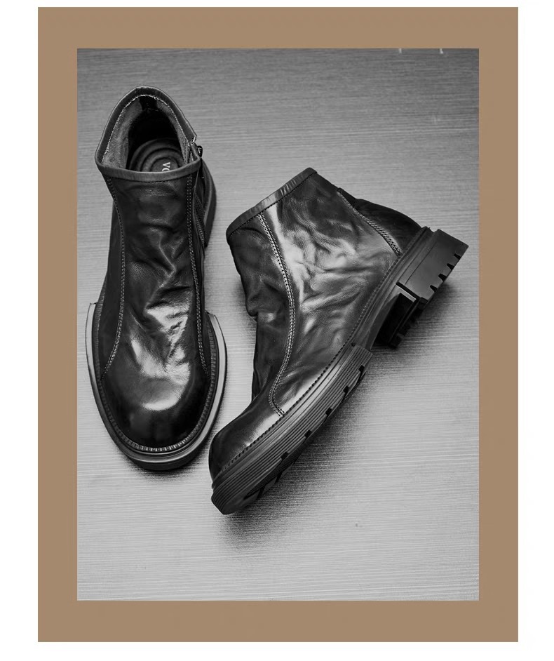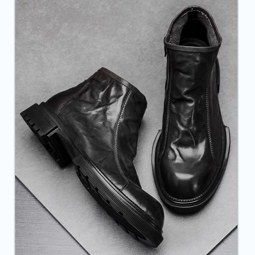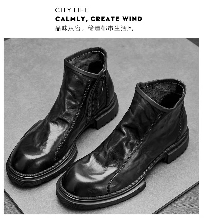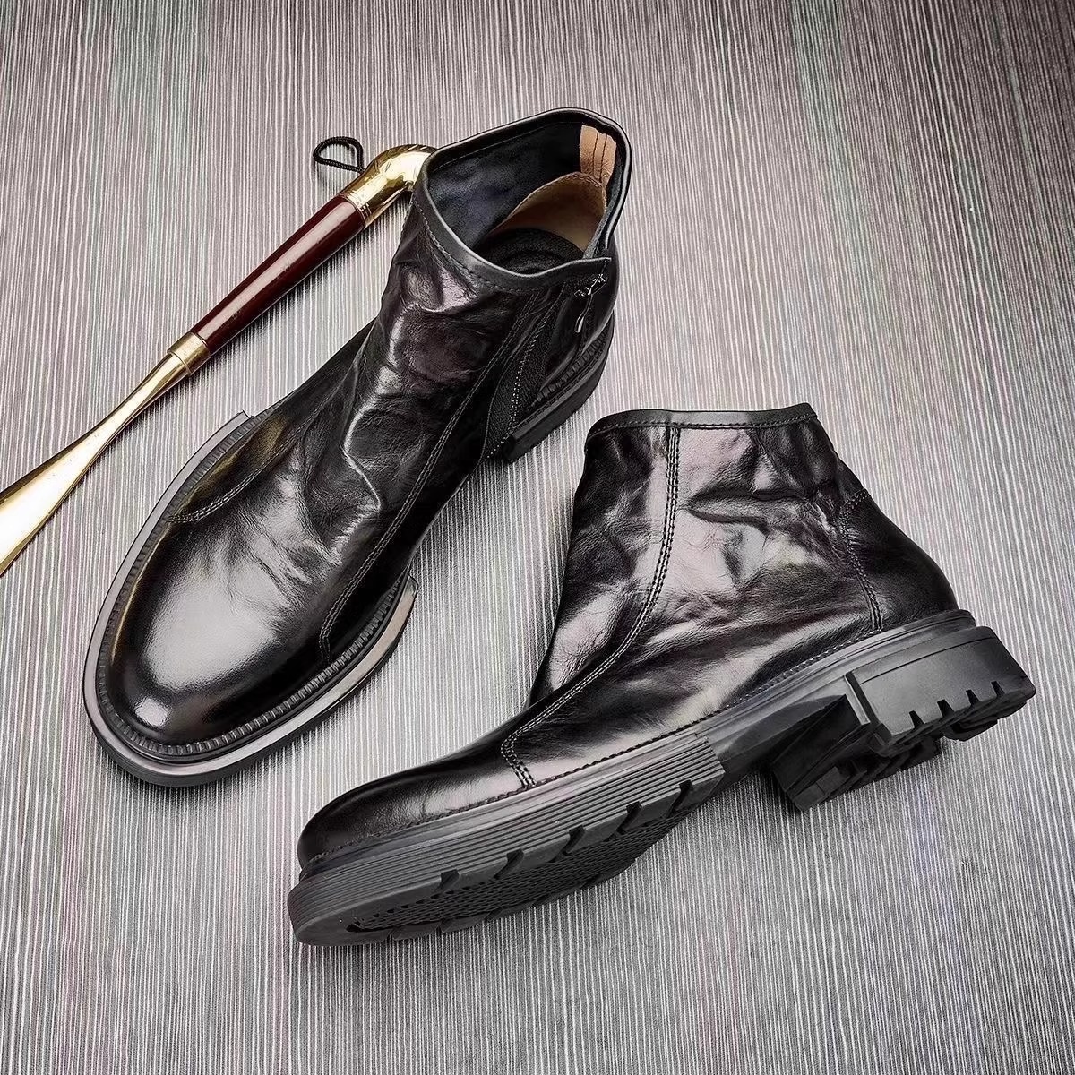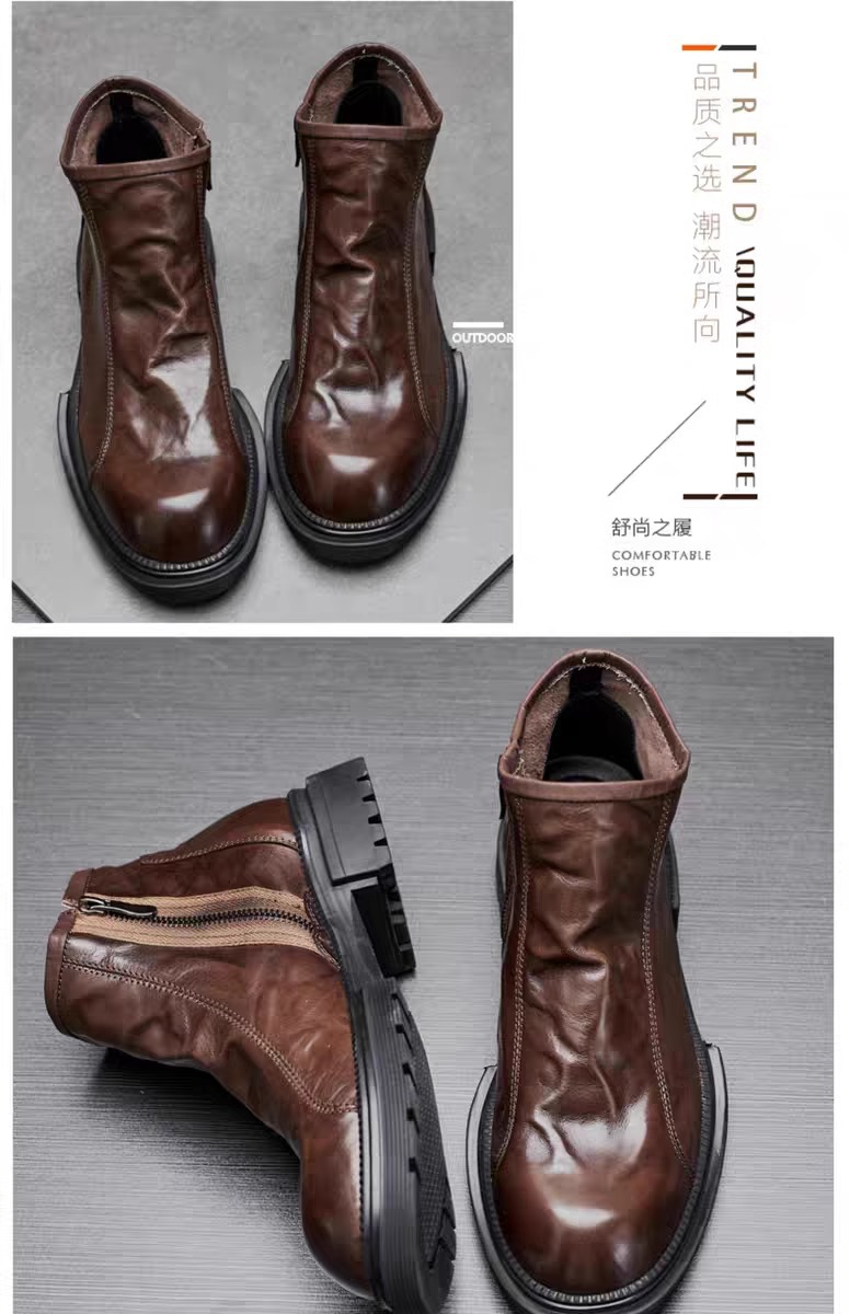 本革通気性防臭ハイトップジッパーマーティンブーツ秋冬新作厚底ラウンドトゥビジネスワークブーツメンズブーツ