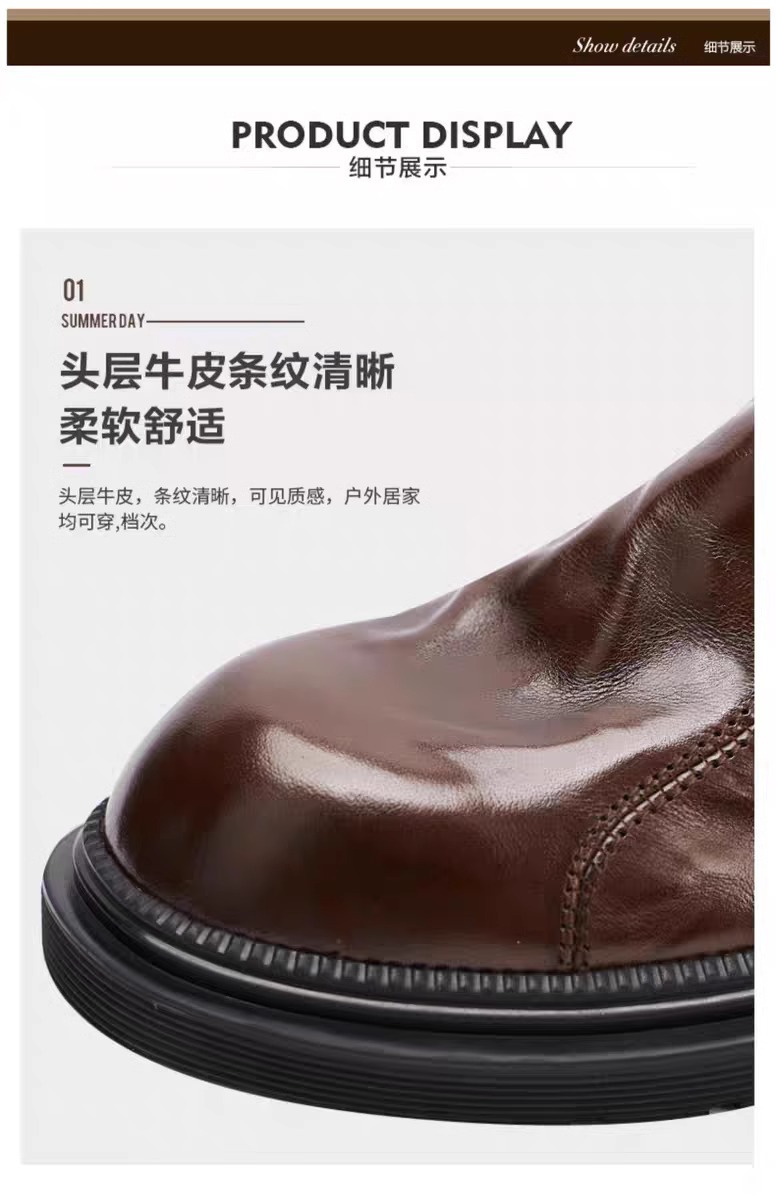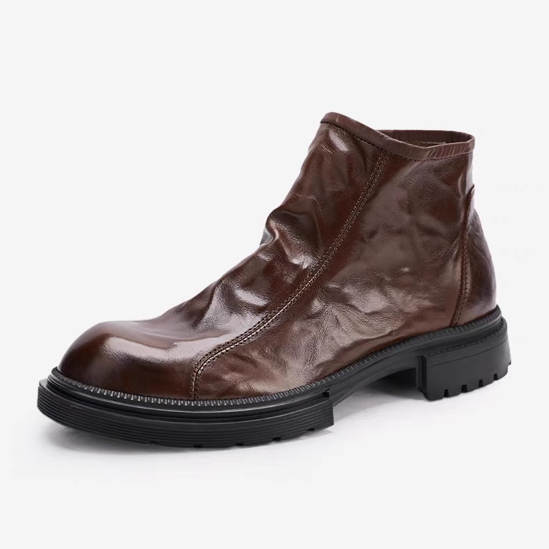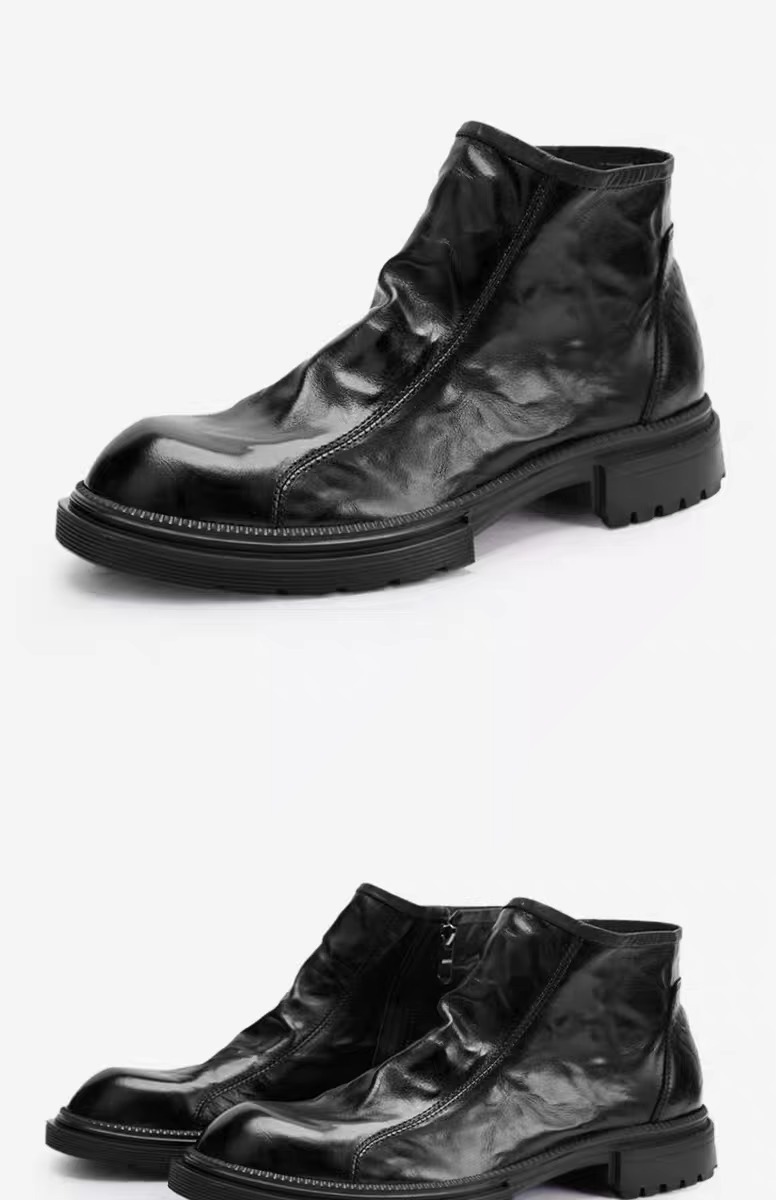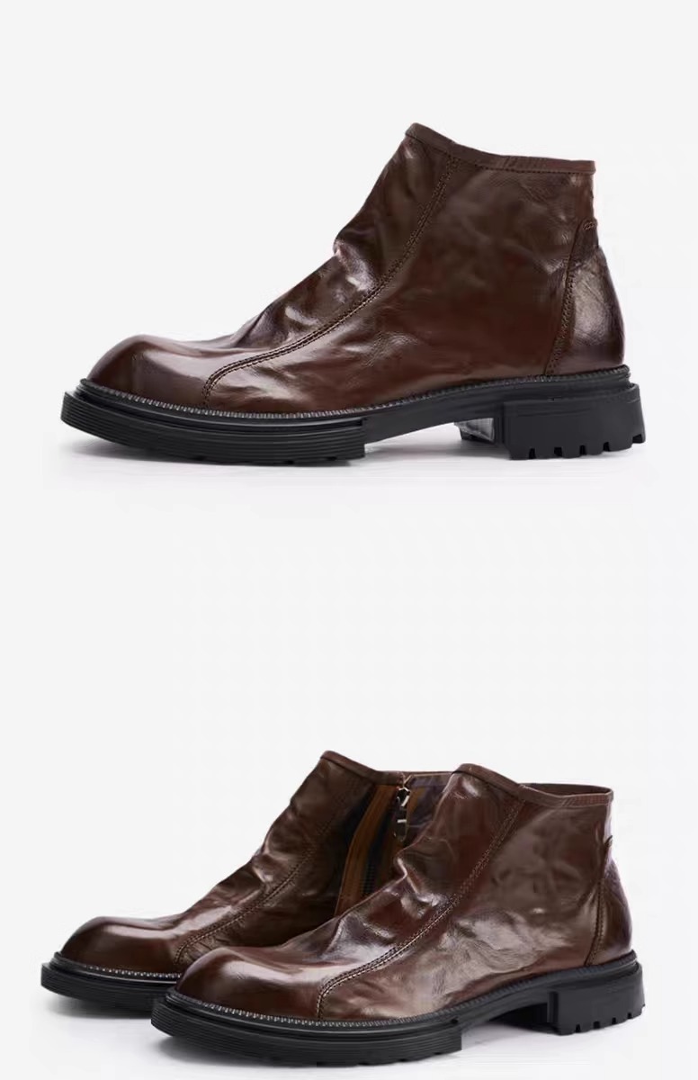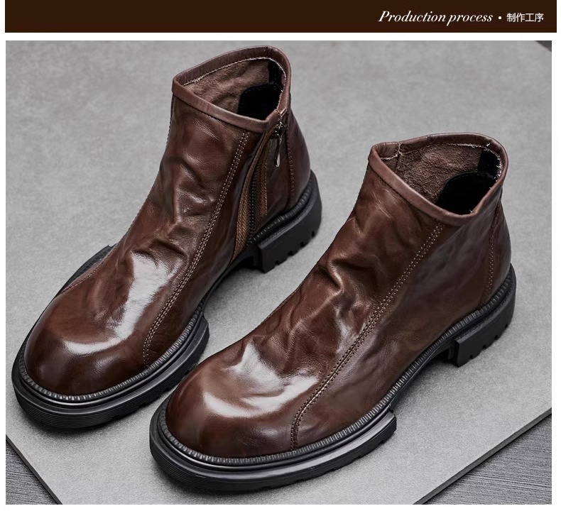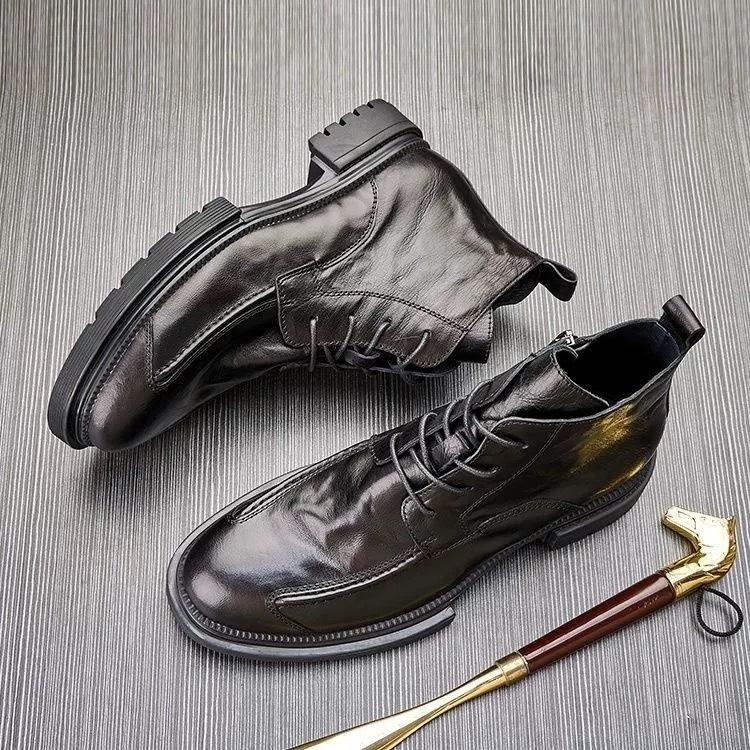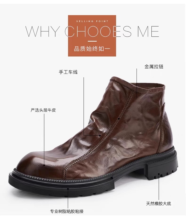本革通気性防臭ハイトップジッパーマーティンブーツ秋冬新作厚底ラウンドトゥビジネスワークブーツメンズブーツ