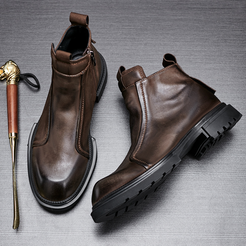 外国貿易の皮の靴の男性の本革のファッションのチェルシーの男性の靴の春の高い靴の厚い底のファスナーのマーティンの靴の男性