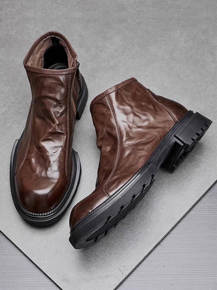 本革一層牛革マーティンブーツ メンズ 秋冬 裏起毛 おしゃれ ハイカット 厚底 アウトドアブーツ ジッパー チェルシー 耐摩耗性
